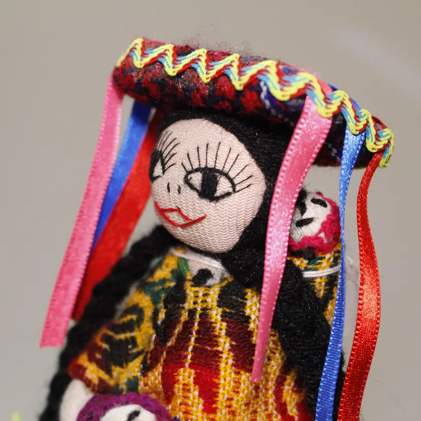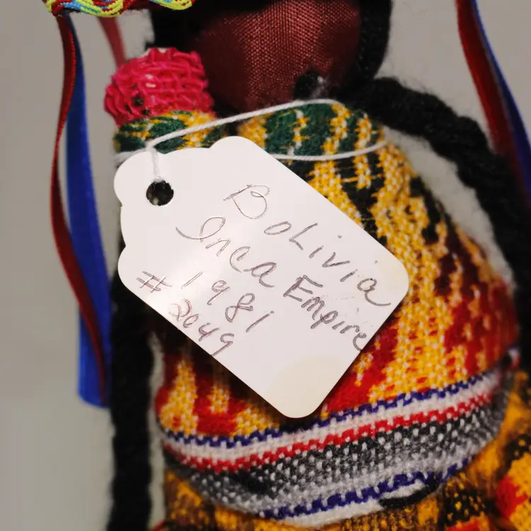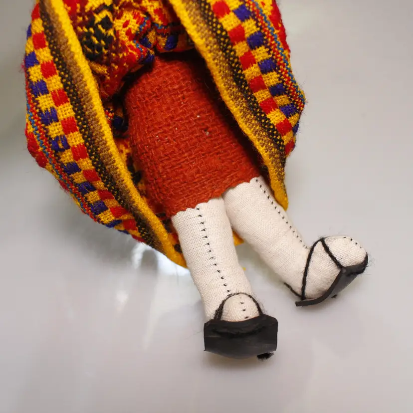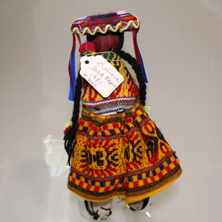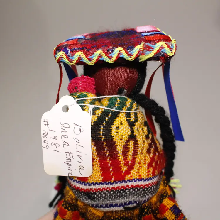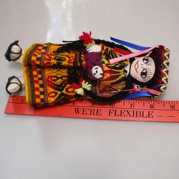 This sweet girl came to me with this tag already on her, I'm unsure why it reads "Inca Empire", unless she was made inspired by the Inca Empire, which fell in the 1500s. But she is colorful and beautiful with one baby in her arms and the other swaddled to her back.