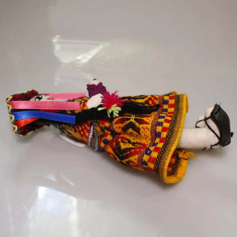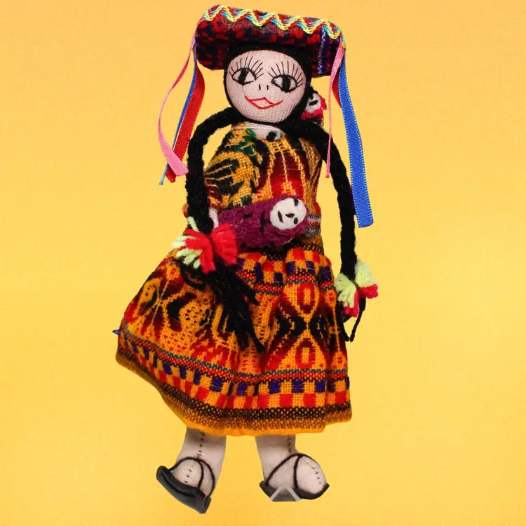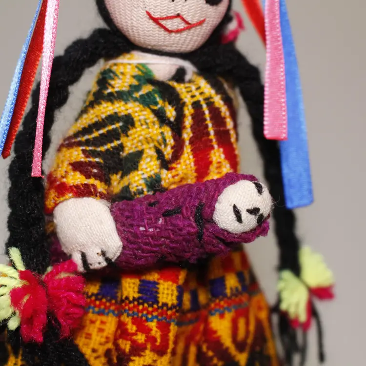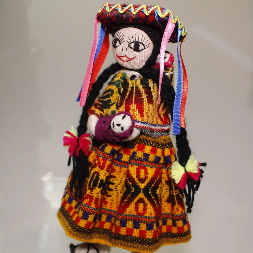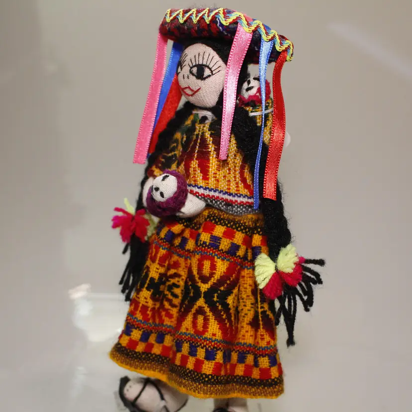 This sweet girl came to me with this tag already on her, I'm unsure why it reads "Inca Empire", unless she was made inspired by the Inca Empire, which fell in the 1500s. But she is colorful and beautiful with one baby in her arms and the other swaddled to her back.
