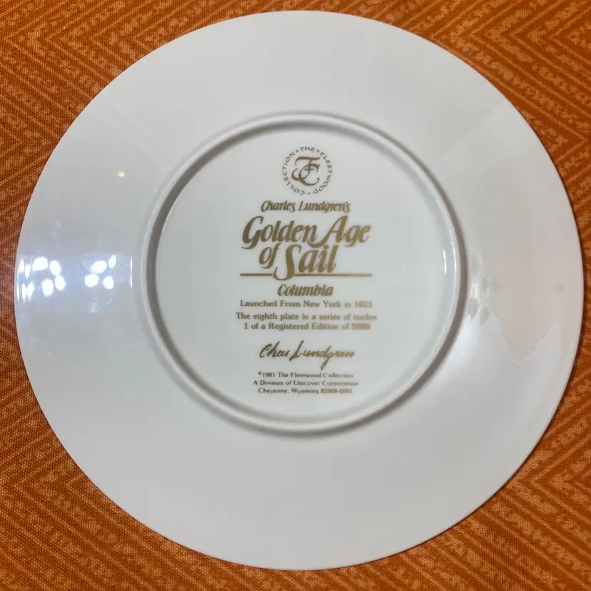 Measures about 8” please see photos as it is part of my description. the Columbia ship launched from New York in 1821. This is the eighth plate in a series of twelve.