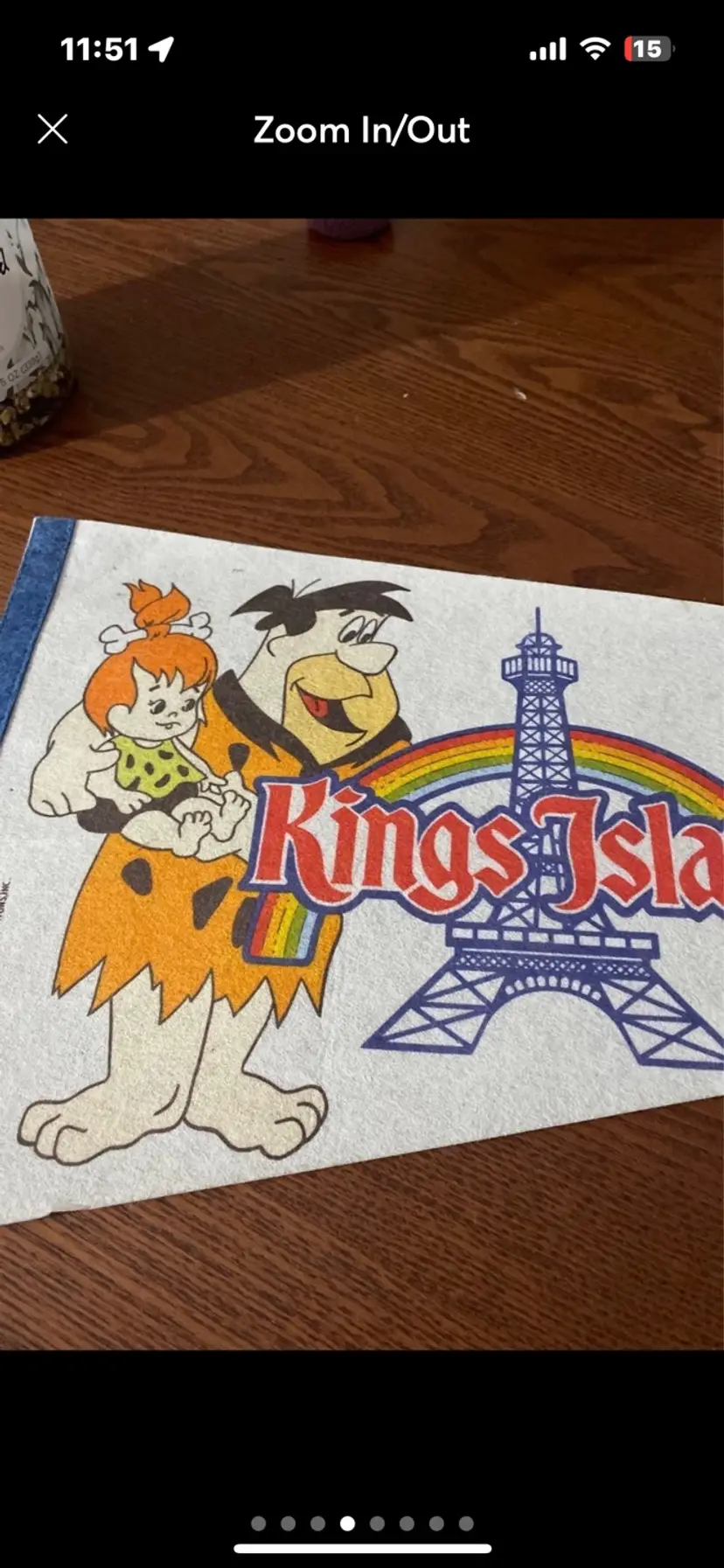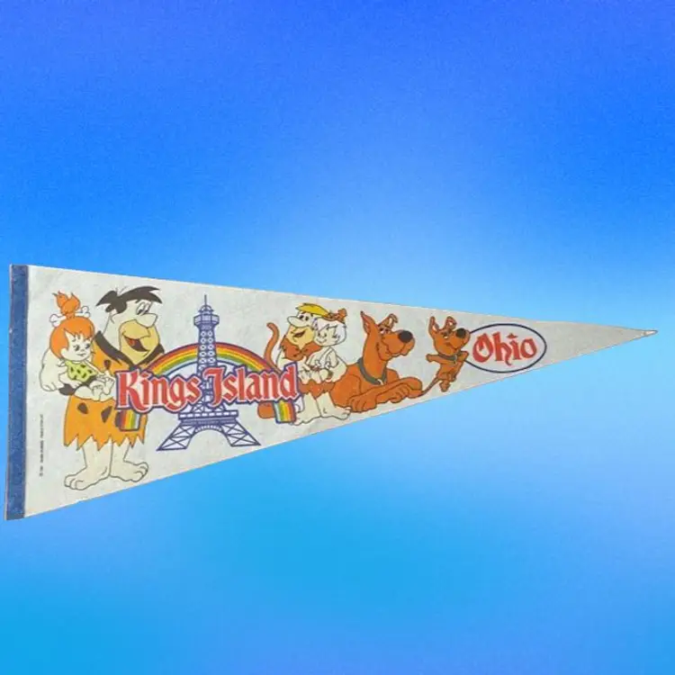 Vintage 1981 Kings Island felt pennant. Kings island is an amusement park I’m Cincinnati, Ohio. There kids area used to be Hanna Barbera Land. In the middle of the park is a 1/3 scale replica of the Eiffel Tower.
