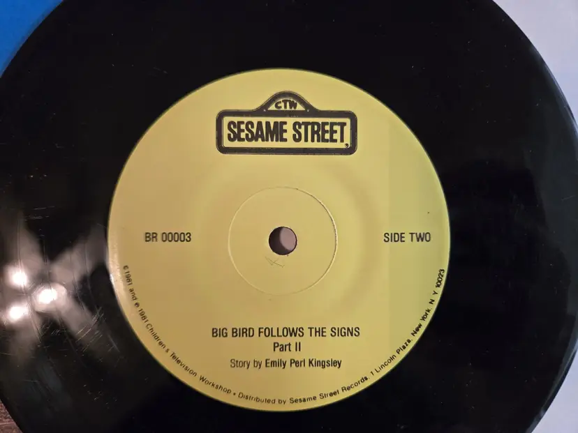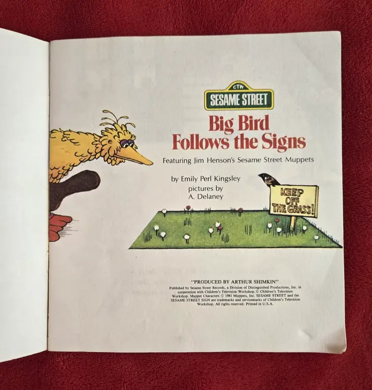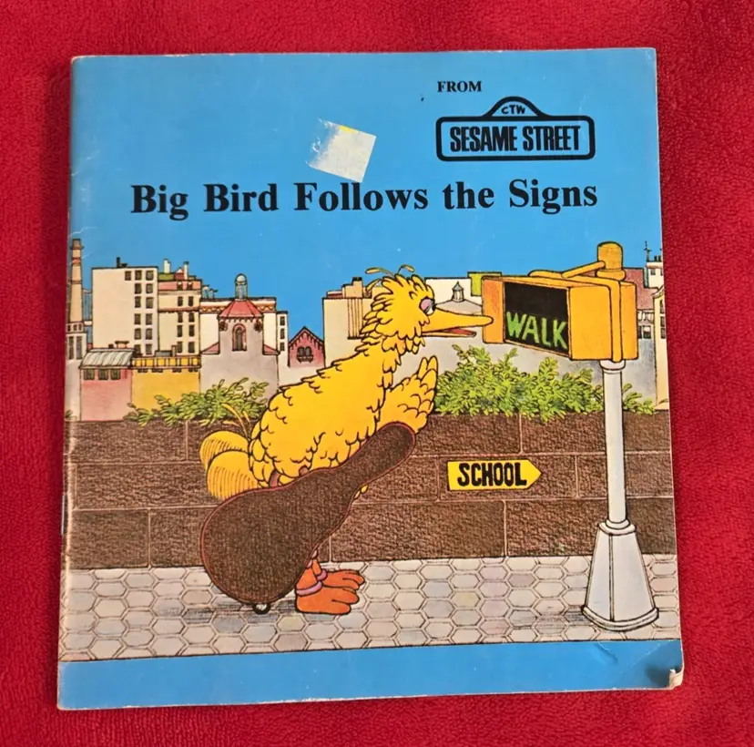 The product is a vintage 1981 Sesame Street Big Bird Follows The Signs read along book and record set. This picture book, part of the Sesame Street series, features the beloved character Big Bird following signs in a fun and educational story. Written by Emily Perl Kingsley and published by Sesame Street Records, the paperback book includes 24 pages and is targeted towards children and young adults. With a nostalgic appeal from the 1980s era, this book is a charming addition to any child's book collection.