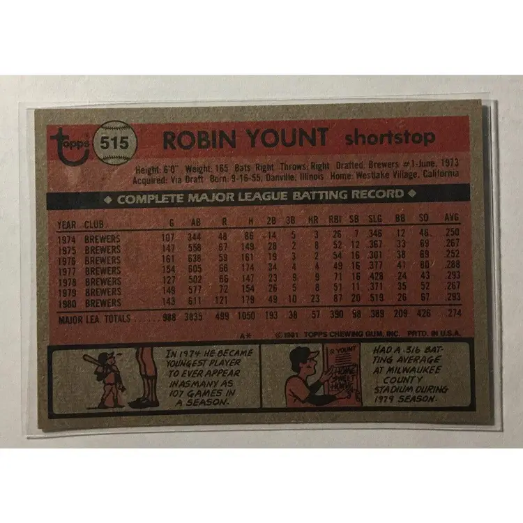 1981 TOPPS #515 ROBIN YOUNT HOF Milwaukee BREWERS