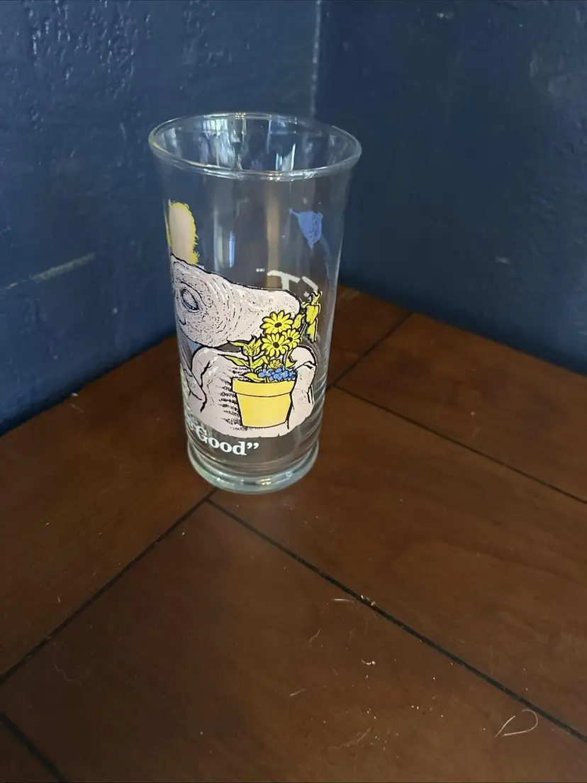Delve into the world of vintage memorabilia with the 1982 E.T. Extra Terrestrial Glass, a limited edition collectible that harks back to the iconic era of film and fast food. This authentic "Be Good" Cup, originally distributed by Pizza Hut, captures the essence of the beloved extraterrestrial character and makes a unique addition to any collection. Crafted during a time when restaurants and fast food establishments created memorable promotional items, this glass is a testament to the era's advertising charm. The piece is unmodified, preserving its original design and aesthetic, making it a genuine representation of the Restaurants & Fast Food theme it celebrates.