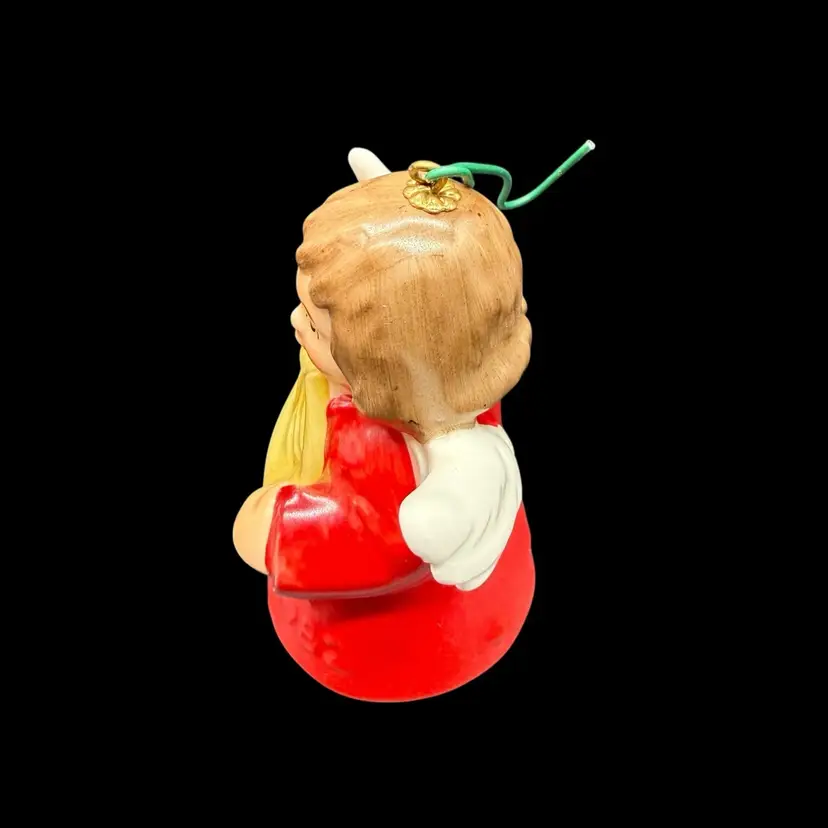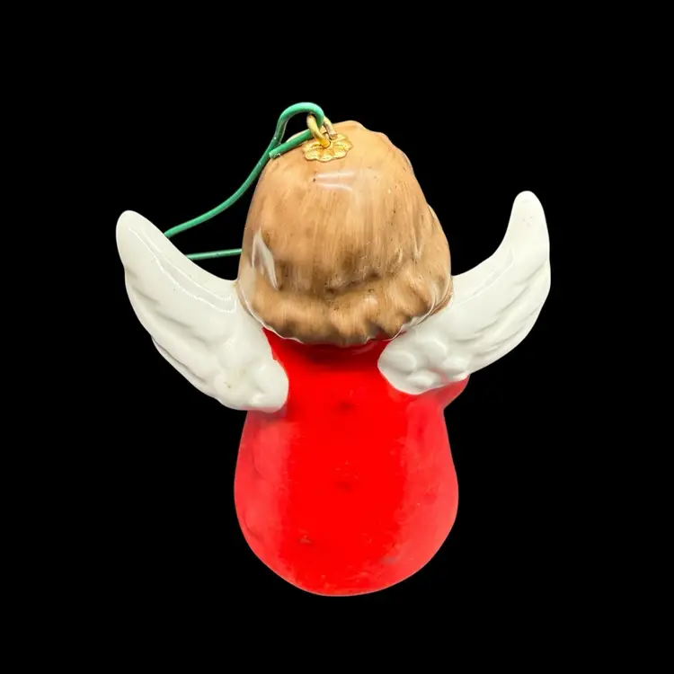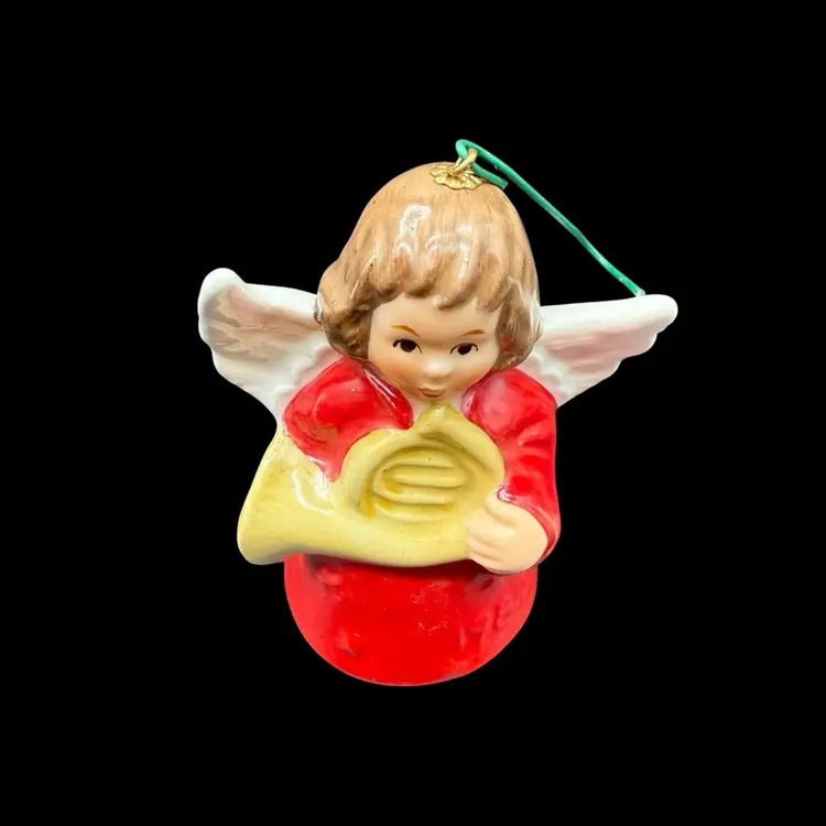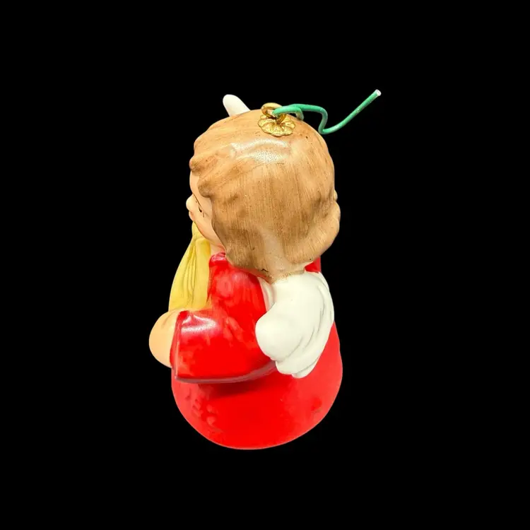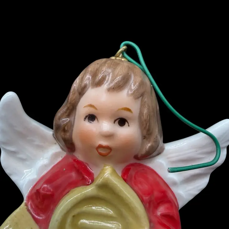 This 1982 Seventh Edition Goebel Annual Christmas Bell Ornament features a red angel with a horn design, crafted from porcelain using pottery production technique in West Germany. The limited edition ornament is part of a collection of vintage Christmas decorations, perfect for adult collectors who appreciate nostalgic holiday decor. With its hanging feature and original packaging, this ornament captures the essence of Christmas and the theme of angels, making it a cherished addition to any seasonal display.