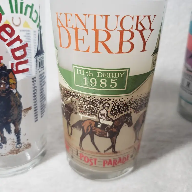 Brand: Libbey Kentucky Derby Glass: 1984 Run for the Roses Sport: Horse Racing Color: Multi-Color Event: Kentucky Derby Product: Official Mint Julep Derby Glass Gender: Unisex Adult Country/Region of Manufacture: United States