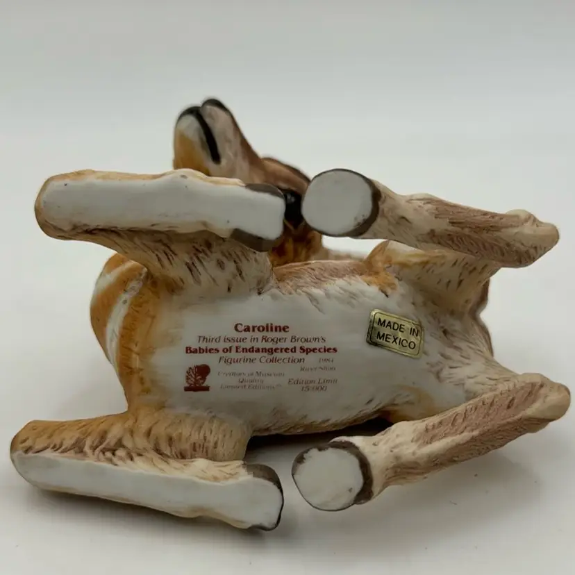 5 inches high 4.8 inches long 2.8 width 1984 Rivershore Limited edition creatures of museum quality third issue of Roger Brown’s babies, endangered species good condition made in Mexico. Please see pictures for more details.