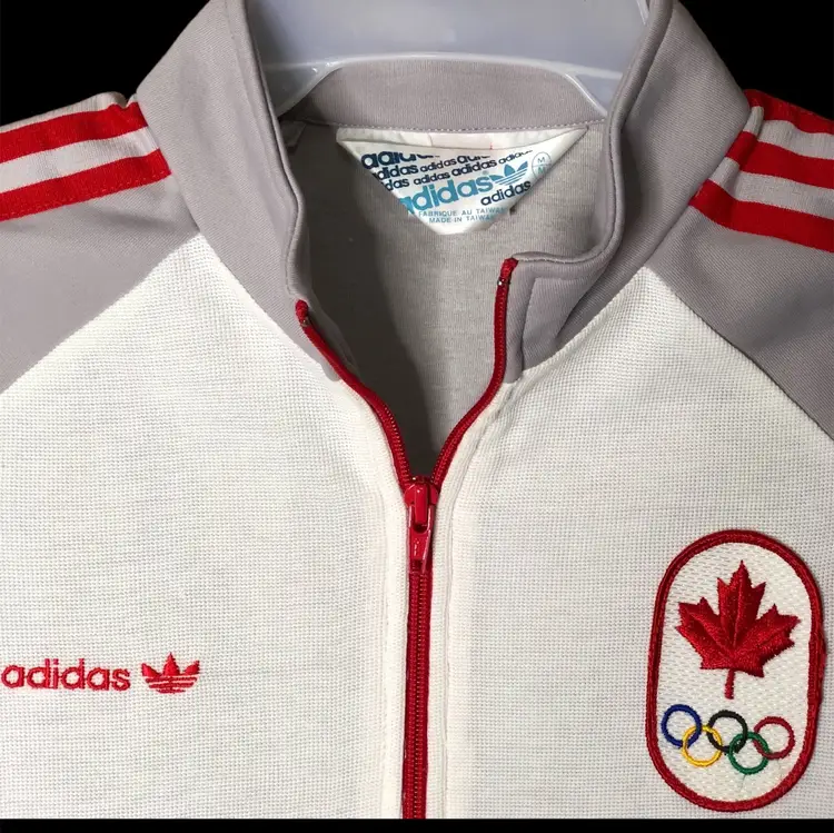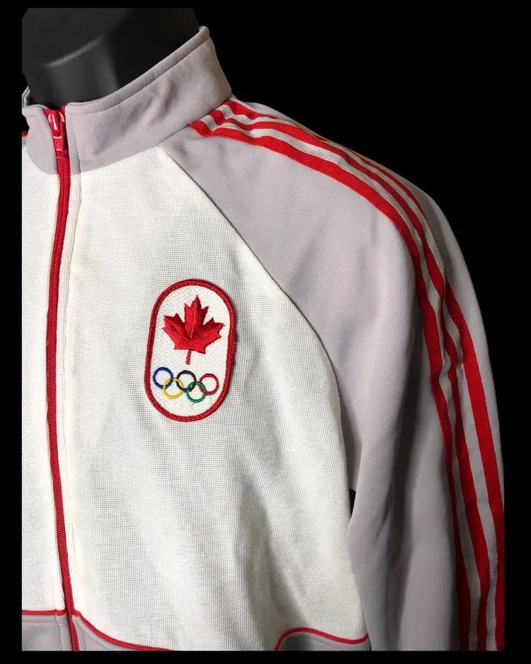 1984 LOS ANGELES SUMMER OLYMPICS TEAM CANADA ATHLETE WORN AUTHENTIC WARM UP SUIT VINTAGE TEAM CANADA ADIDAS JACKET SIZE M PANTS SIZE S Matching Jacket and Pants by Adidas was worn by a TEAM CANADA OLYMPIC ATHLETE. Excellent condition with light evidence of wear and storage.