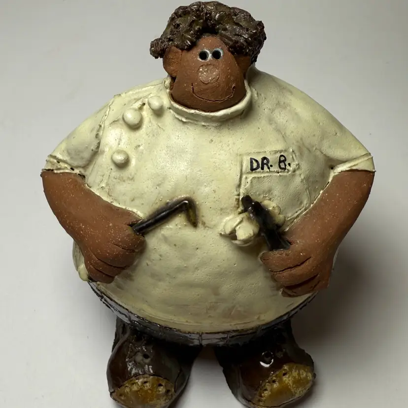 1984 Sara Meadows Clay Art Balloon People Dr B Dentist Molar Figurine Statue. PLEASE READ: His nose has come off but I did not notice when I picked up. 5.75" tall x 4" diameter on base. Clay and signed on the bottom.
