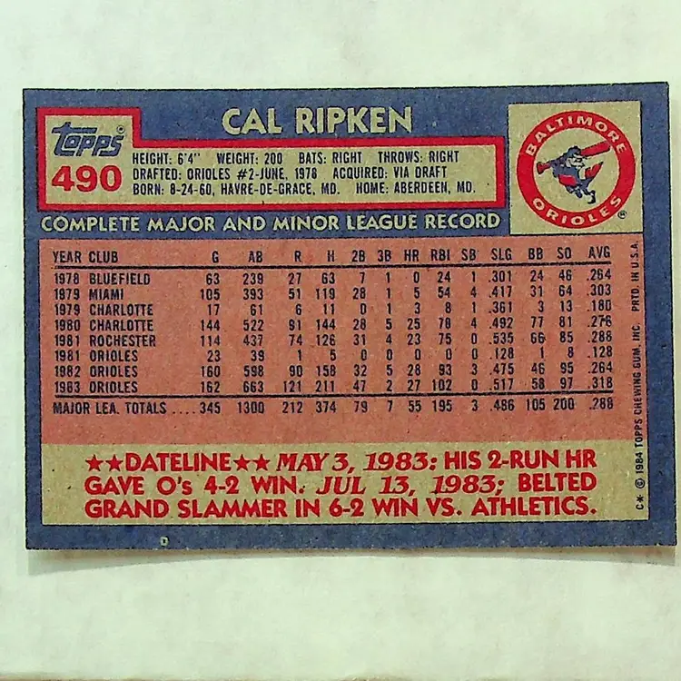 1984 Topps Cal Ripken, Jr. #490 Baseball Card - from Vending Case