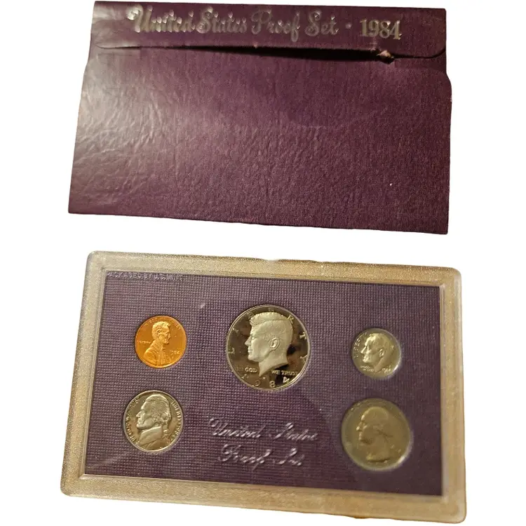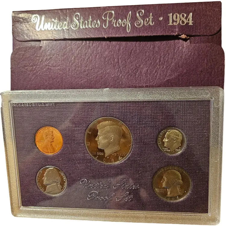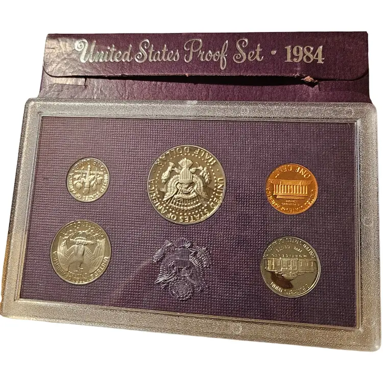 This 1984 United States Proof Coin Set features a collection of beautifully crafted coins.