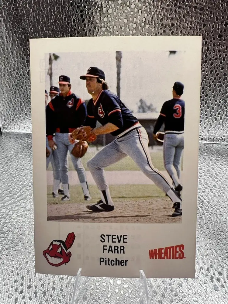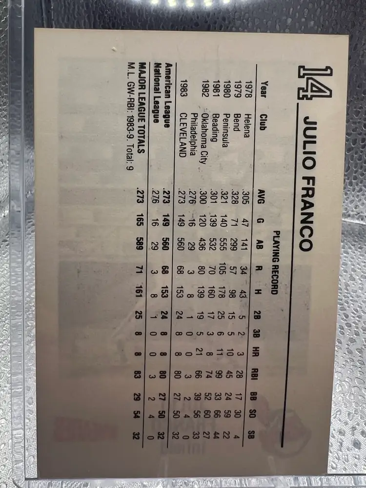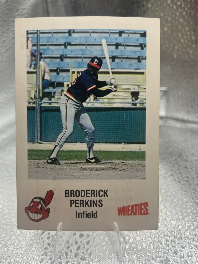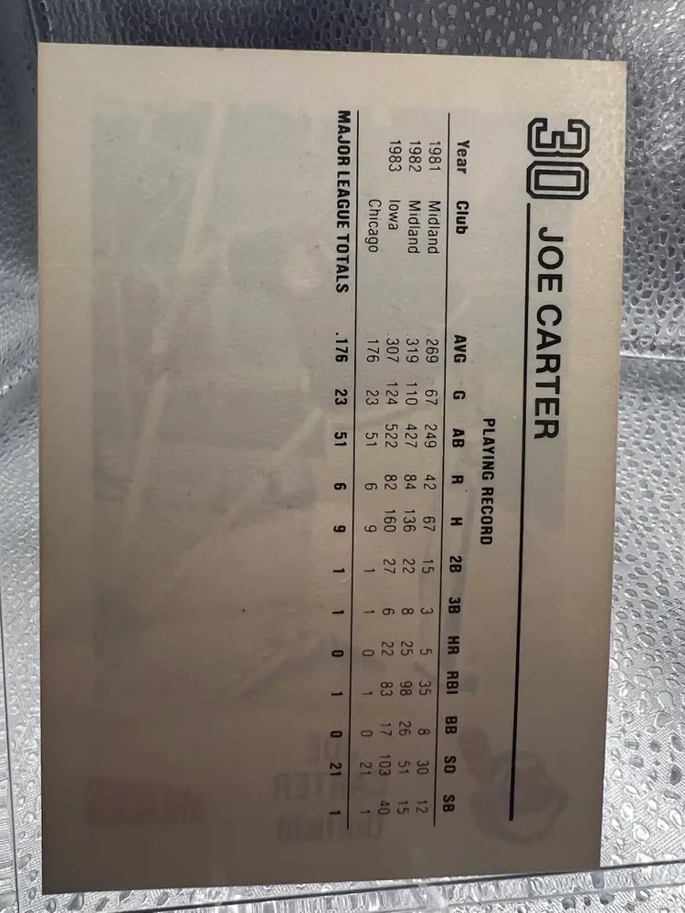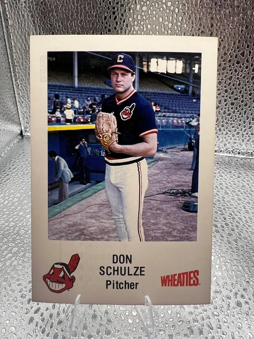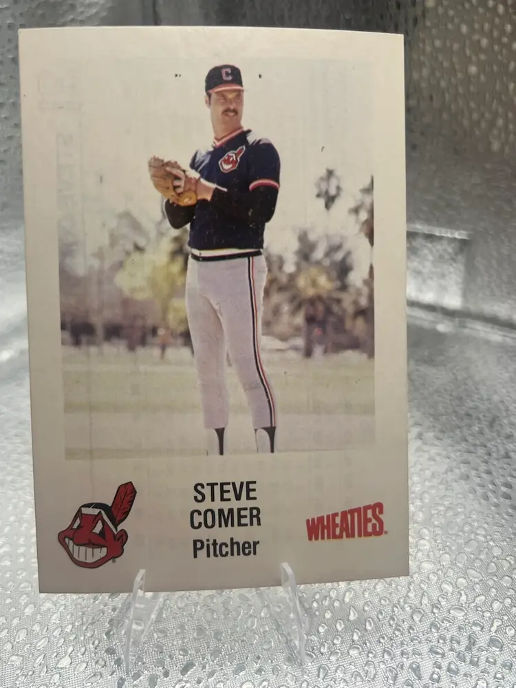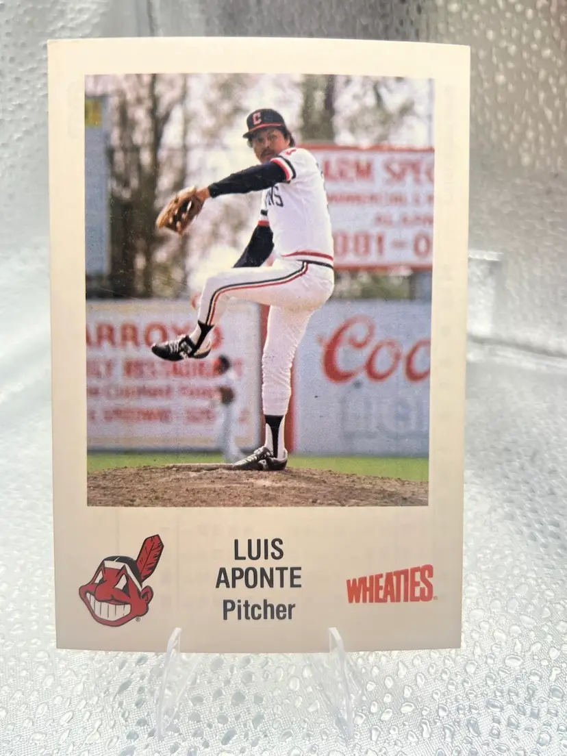 These cards are from the 1984 Wheaties Cleveland Indians set. These were oversized cards (2\text{ }13/16" \times 4\text{ }1/8") distributed as promotional team sets at Cleveland Stadium during "Baseball Card Day." Card Details & Value Set: 1984 Wheaties Cleveland Indians This lot had Joe Carter and Julio Franco.