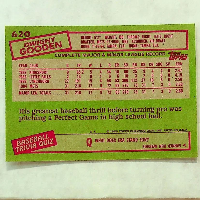 1985 Topps Baseball Rookie Card Dwight Gooden #620 - From a Vending Case