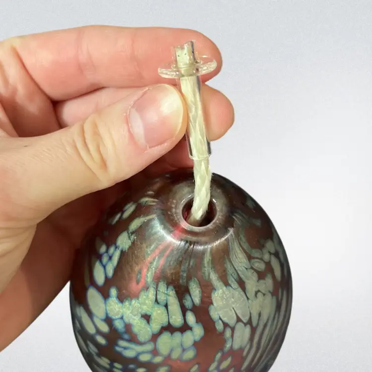 Approximately 3” in diameter and 4.5” tall. No chips or cracks. Some black residue flecks on the inside of wick holder from previous use. I did my best to remove any black residue, but there were a few flecks I couldn’t get. The top of the wick holder is irregular, but it’s not a chip, it’s smooth.