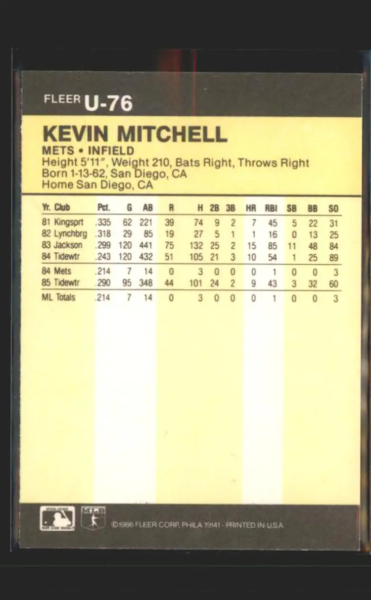 1986 Fleer Update #U-76 Kevin Mitchell - (137) - New York Mets
