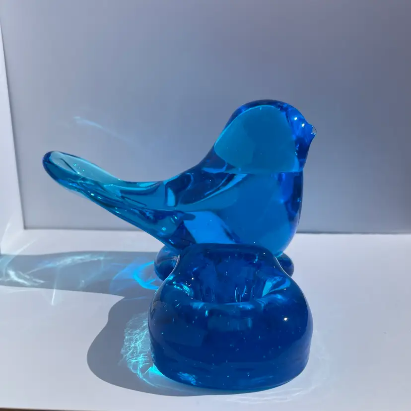This is a 1986 Leo Ward Blue Bird of Happiness Signed Taper Candle Holders Set of 2.