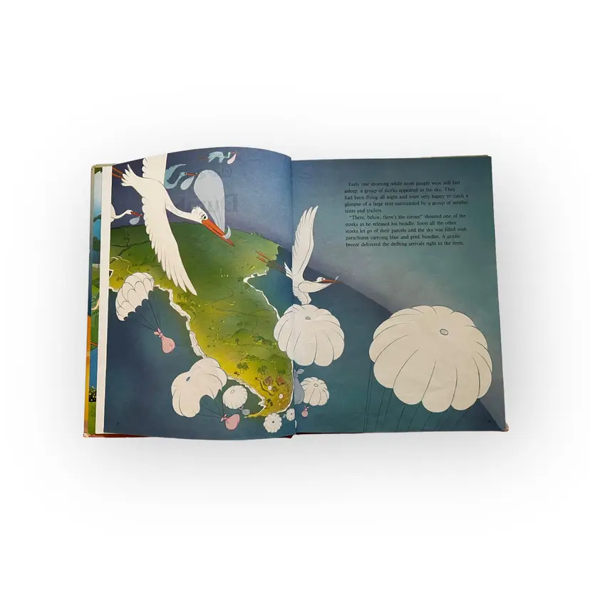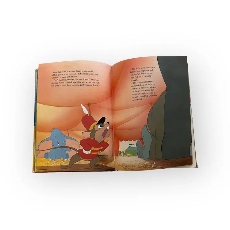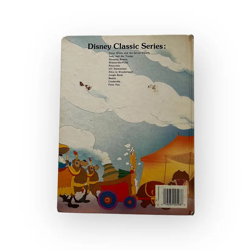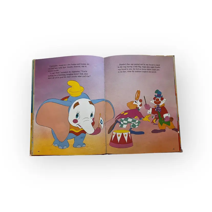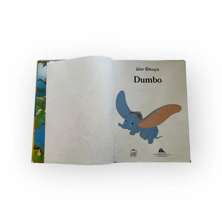 Walt Disney's Dumbo 1986 Large format vintage childrens book. 11.5" x 8.5" Vintage condition. Some wear and discoloration to the cover. A few discolorations to interior pages.