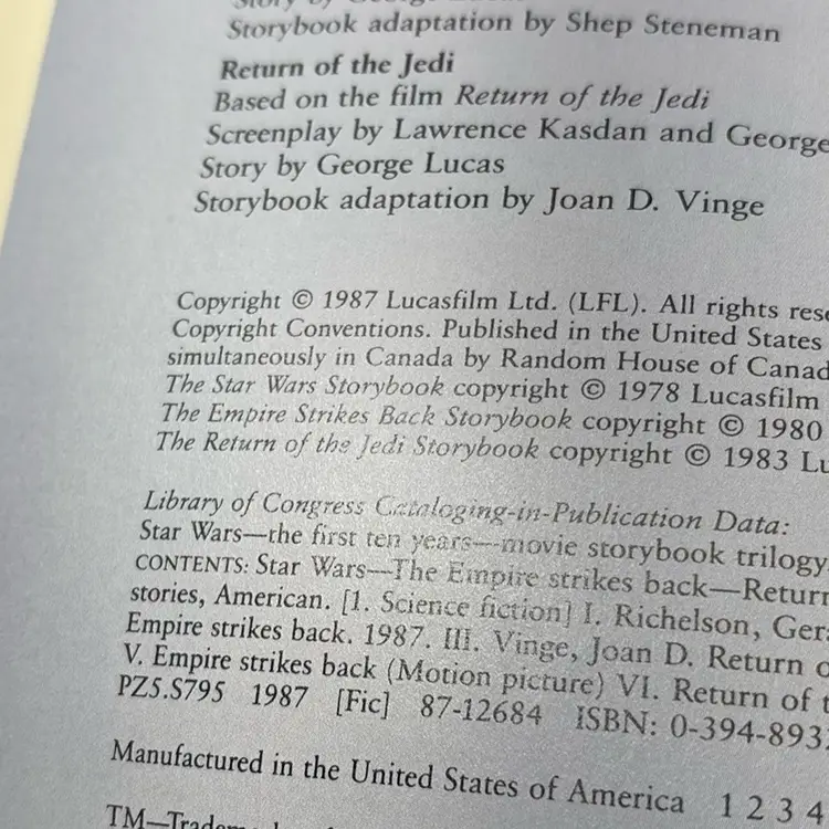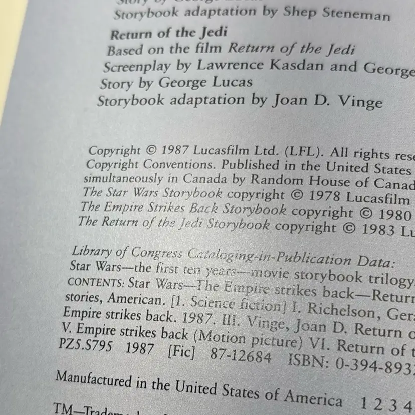 Nice 1987 edition. Many nice pics from the first three movies. Book has some wear with a tear on bottom of spine and some scratches on rear cover. Free shipping.