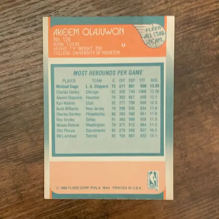 1988 Fleer Akeem Olajuwon. Nice looking card. Take a look at the pictures for more details.