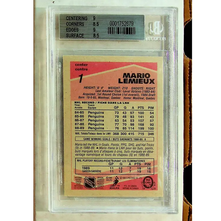 1989-90 O-Pee-Chee Hockey Card - Mario Lemieux #1 BGS 8.5 NEAR MINT-MINT+ - Cert#0001752679