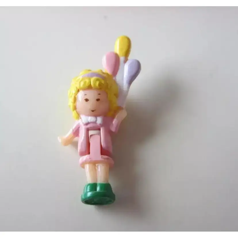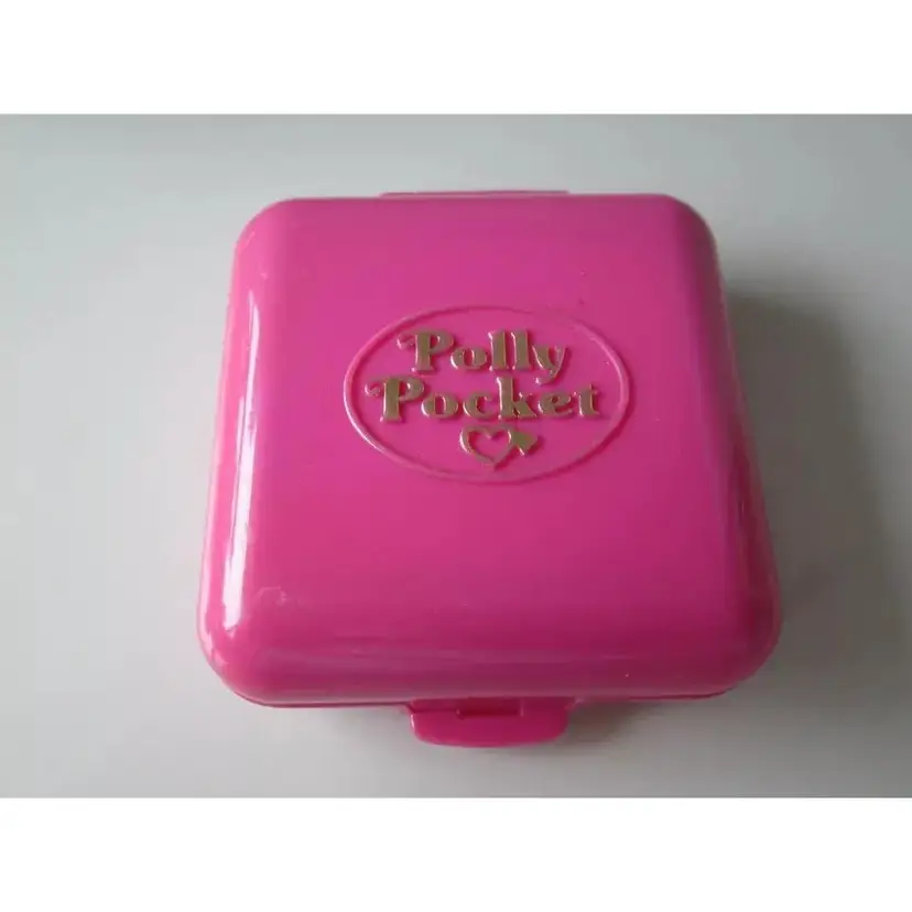 1989 Polly Pocket Polly World Amusement Park Compact Playset with one doll Polly. It does NOT have the ride car. Polly is a slightly loose hinge. The case is in good played with condition.