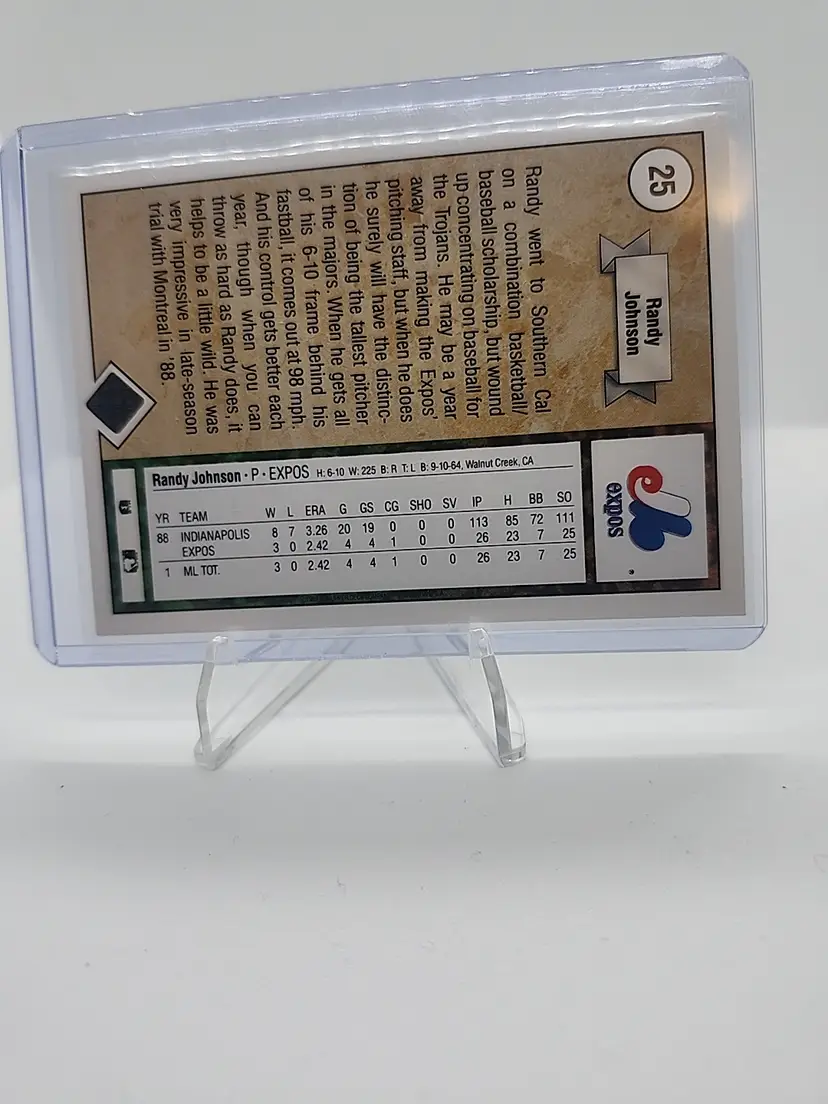 Celebrate the rise of one of baseball’s most dominant pitchers with this 1989 Upper Deck Randy Johnson Rookie. A cornerstone of late-80s collecting, this card captures the early promise of “The Big Unit” before his legendary MLB career. Professionally displayed and protected—perfect for any refined sports memorabilia collection
