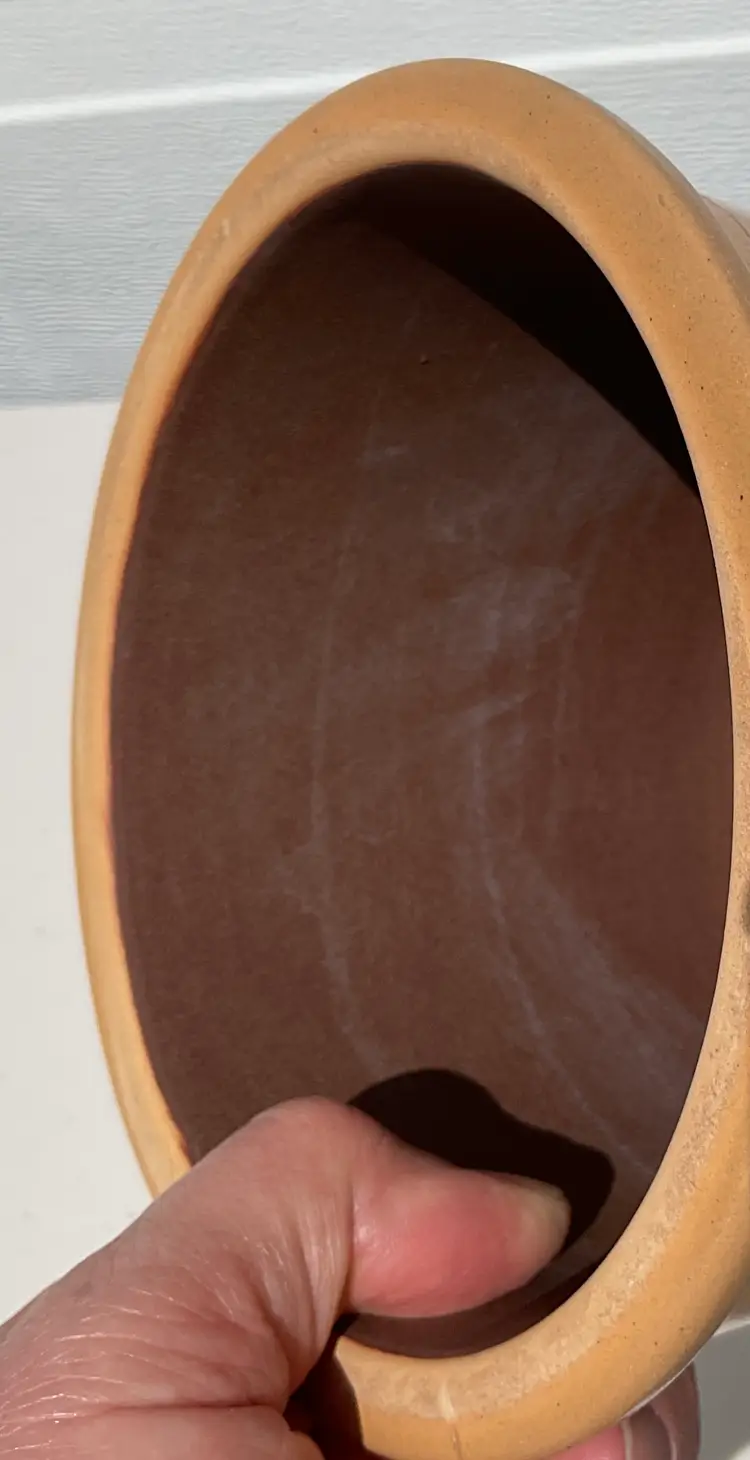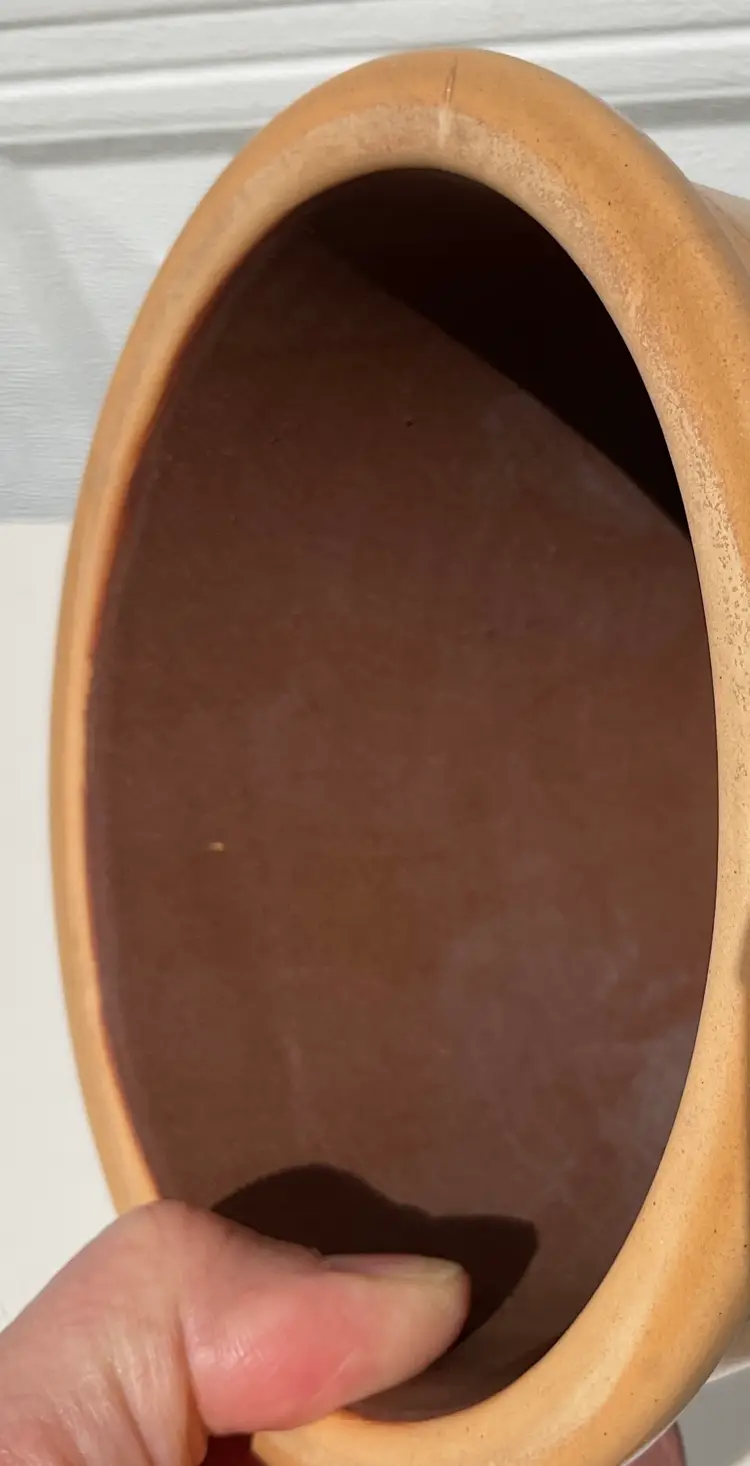 It is in nice vintage condition. There is no post production damage but there is manufacturing flaws. Does have kiln drying lines on exterior wall that do not go through to the inside. Please see all pictures.