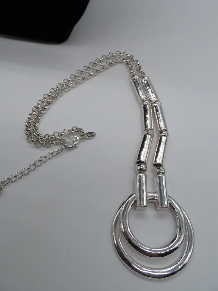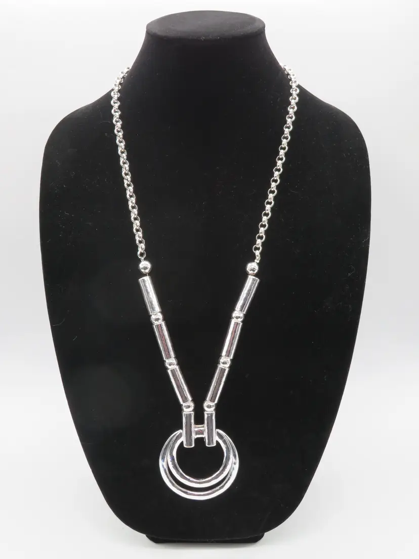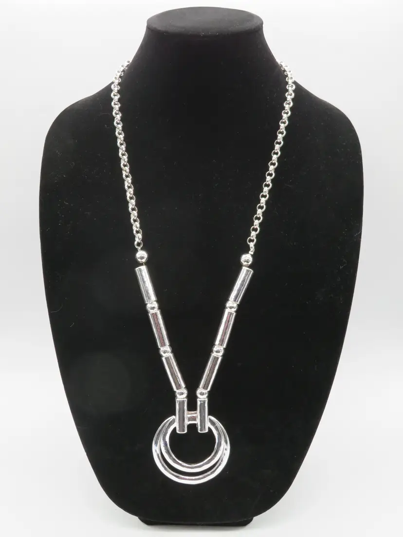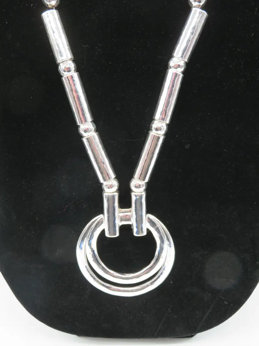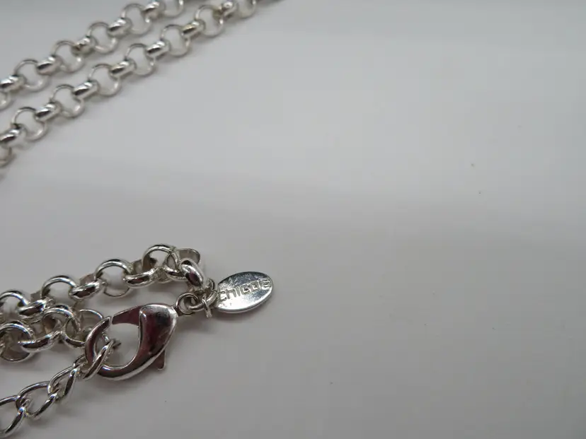 Item Description: For your consideration is a vintage 1990’s Costume Jewelry necklace by Chico’s. A 2” dia round pendant on a 15” long chain with 4” extender. It has the hang tag from Chico’s.