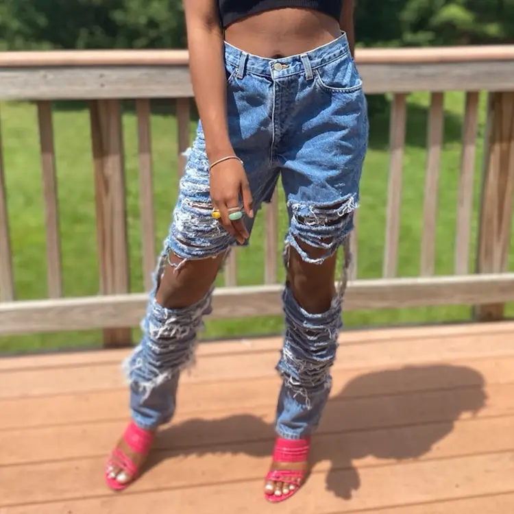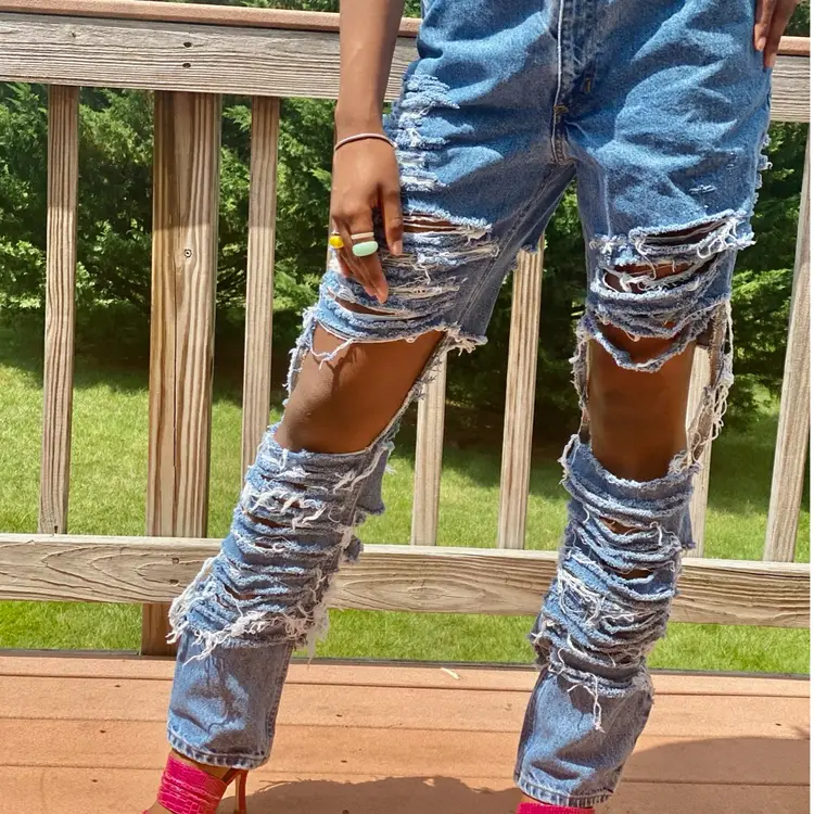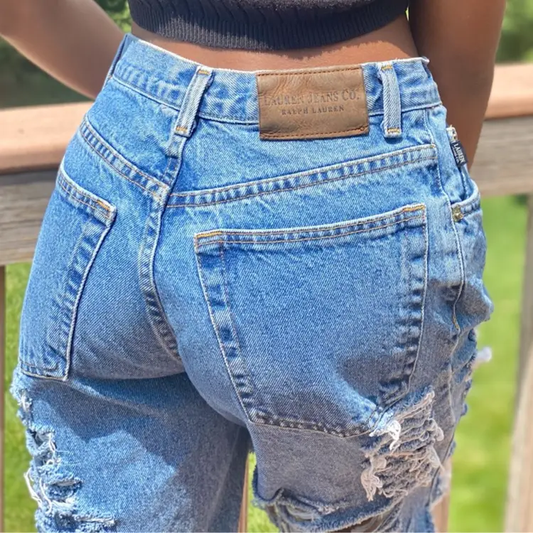 Vintage Ralph Lauren Jeans with a unique distressed design- These jeans feature a beautifully crafted distressed knee-out design- You won't find another pair of jeans like these! If you're looking for a one-of-a-kind statement piece to add to your wardrobe, these jeans are definitely the way to go.