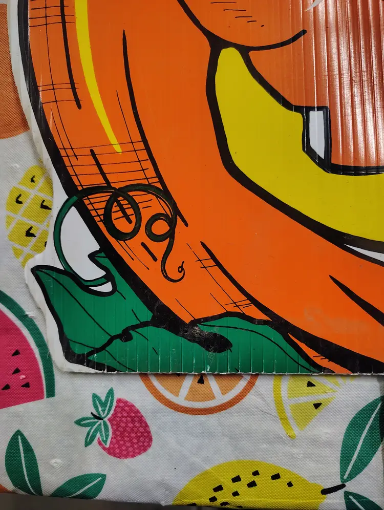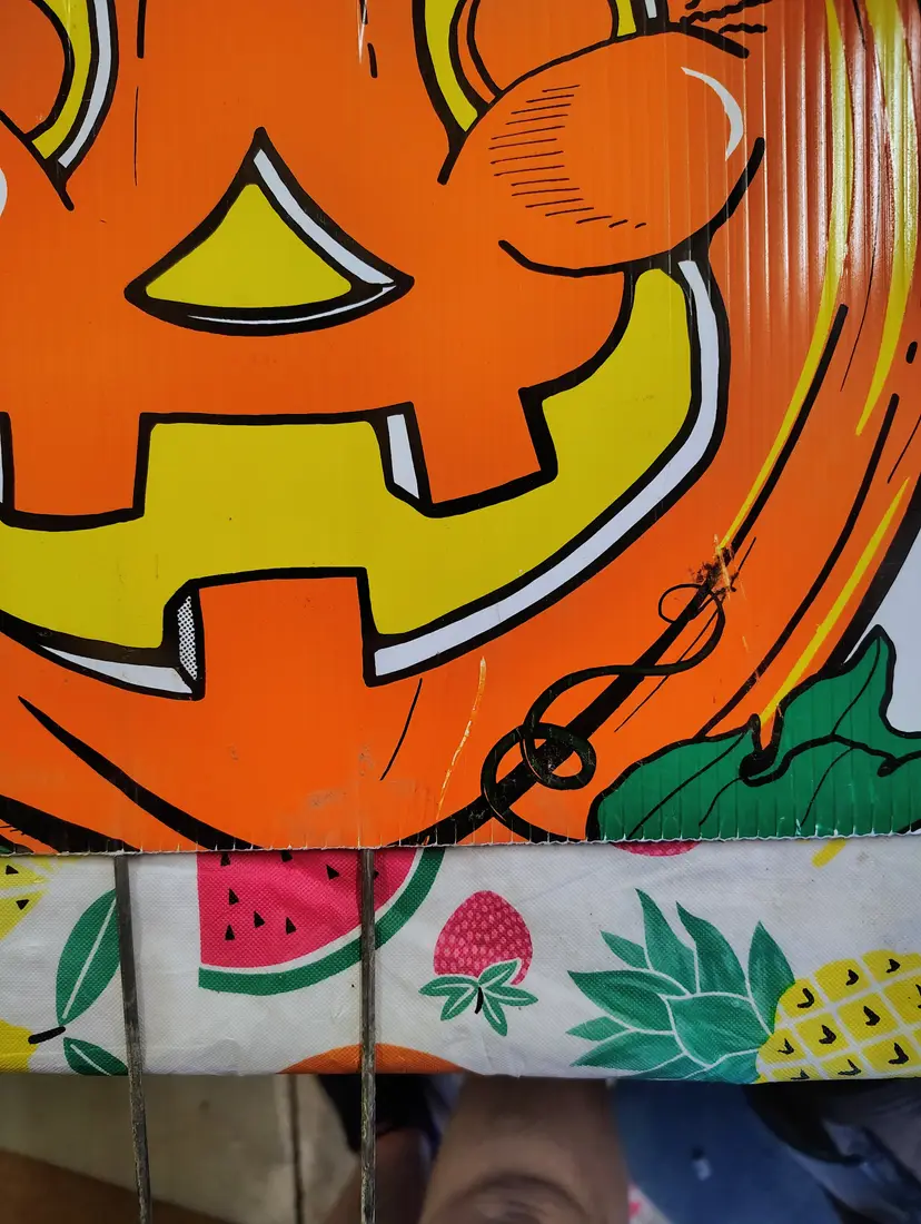 Rare Vintage 1994 Ghost in Jack-o-lantern Pumpkin Trick or Treat Halloween Large Yard Sign Art Decoration by True to Nature Inc. In good condition with some marks and a slight curve at the top as shown in photos. Metal stake included. This could be used indoors or outdoors. Measures 27” H x 14” W. Shipping is based on its large dimensions and custom packaging.