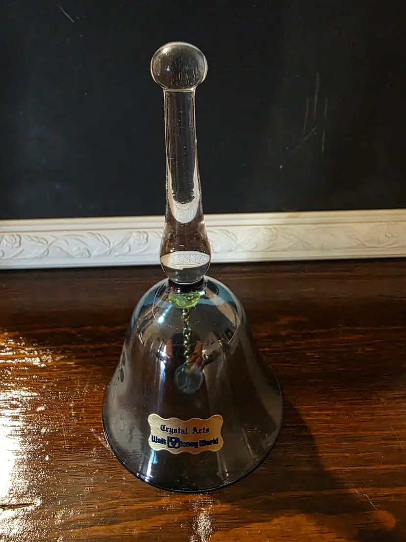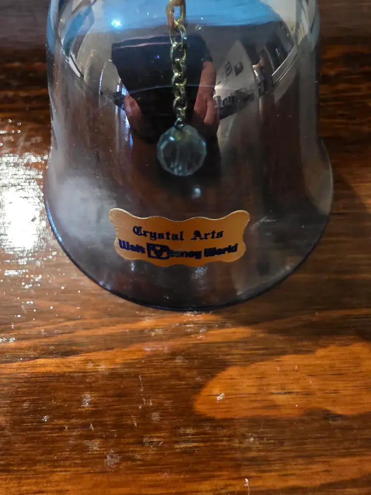 Vintage Walt Disney Crystal Art Glass Bell from the 1990's . Bell is in excellent condition with no chips or cracks or fades. Bell is approximately 5.5 inches height and 3 inches round diameter at Bell. The piece has a clear Glass handle with a blue iridescent Bell that has a frosted Mikey mouse design on it. Very collective piece of Disney products.