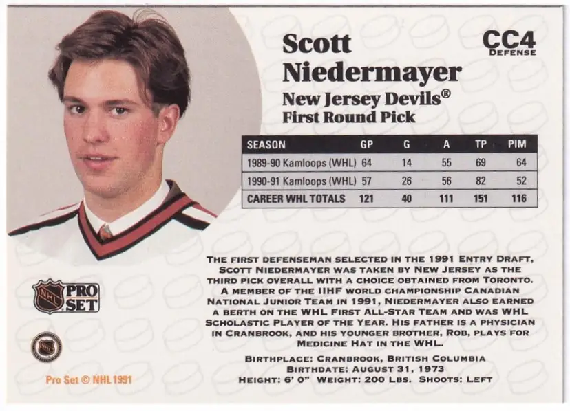 1991-92 Pro Set CC #CC4 Scott Niedermayer SP New Jersey Devils Hockey Card