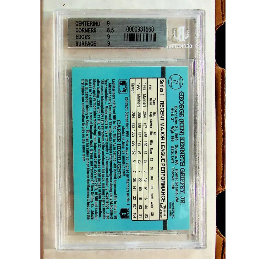 1991 Donruss Ken Griffey, Jr. #77 Baseball Card Beckett 9 MINT
