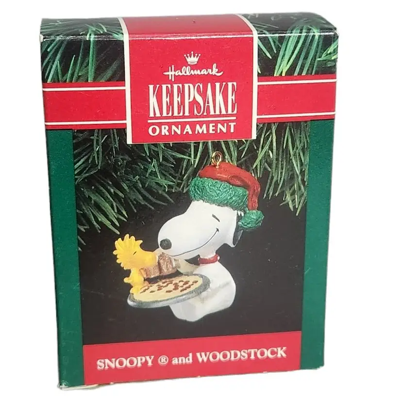 Celebrate the holidays with this whimsical 1991 Hallmark Keepsake featuring Snoopy and Woodstock. This charming ornament captures festive joy, making it a must-have for Peanuts fans and collectors alike.