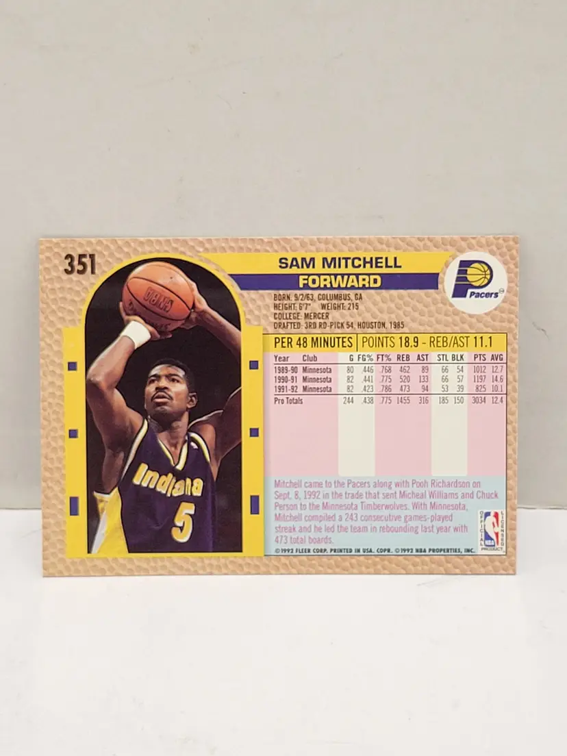 1992-93 Fleer - #351 Sam Mitchell Indiana Pacers