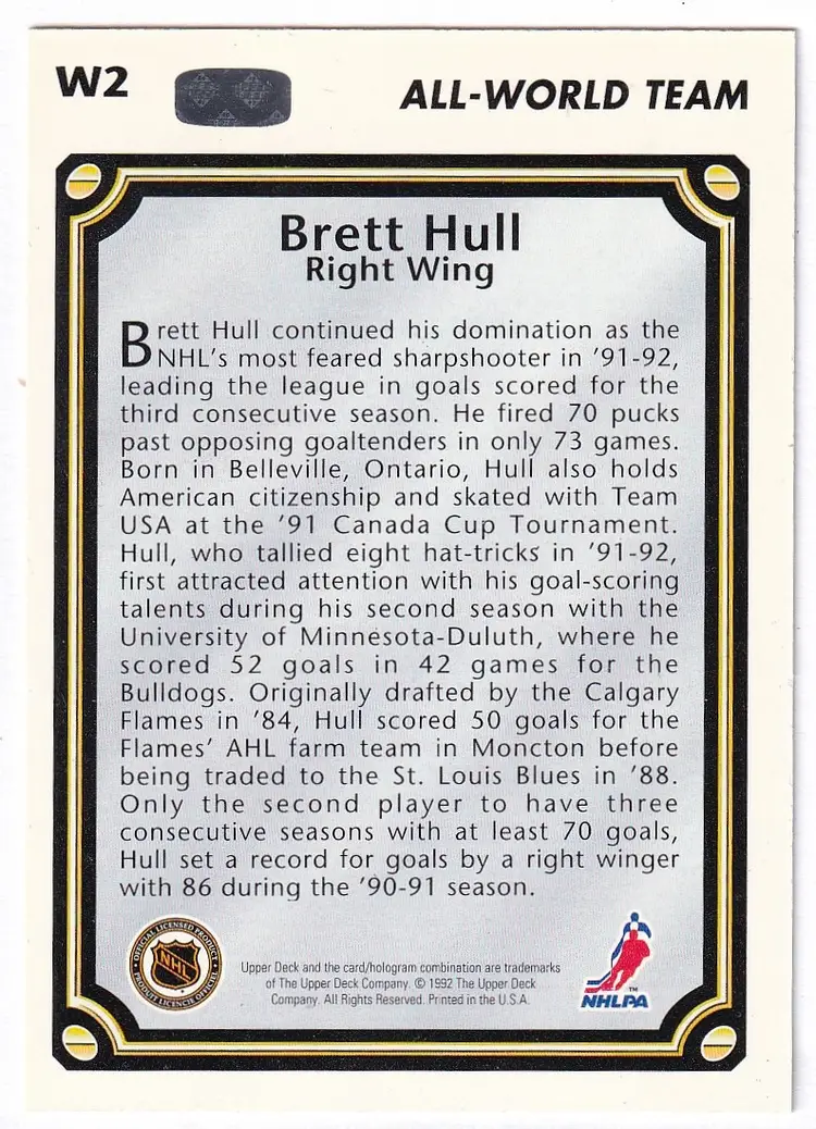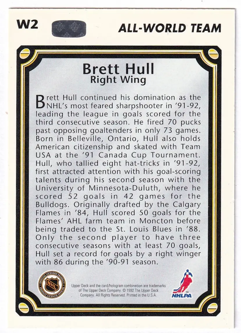 1992-93 Upper Deck All-World Team #W2 Brett Hull St. Louis Blues