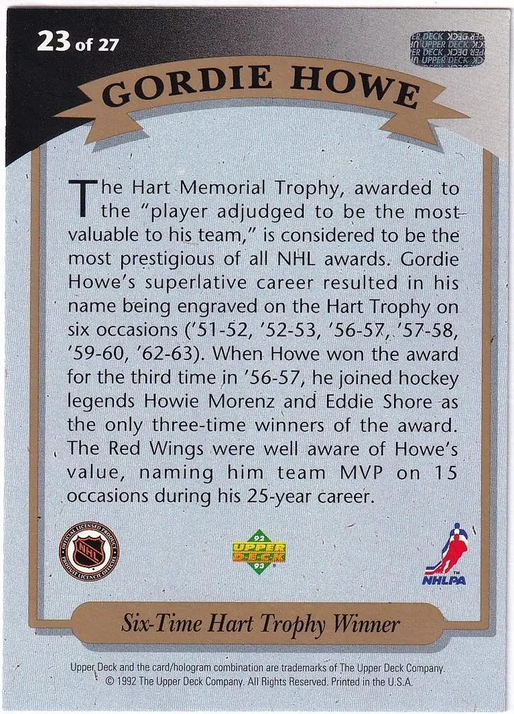 1992-93 Upper Deck Gordie Howe Heroes #23 Gordie Howe Detroit Red Wings