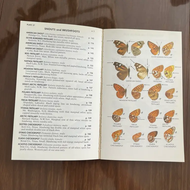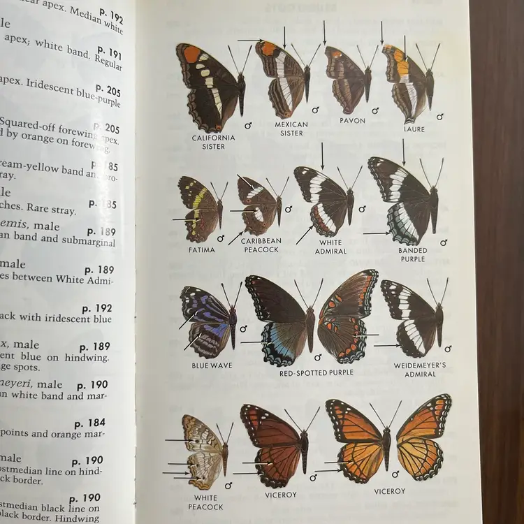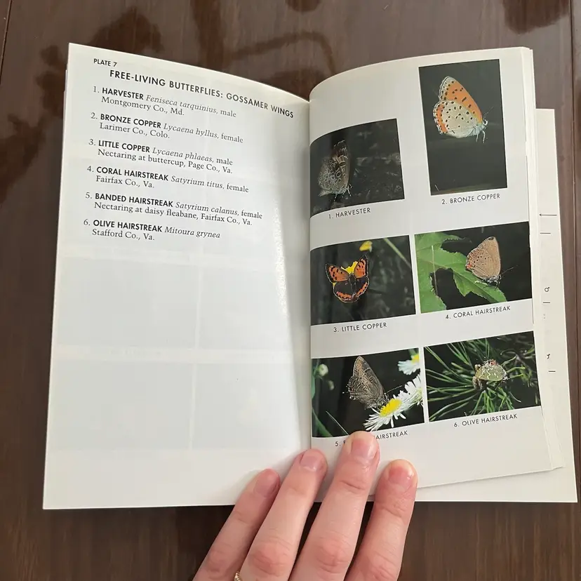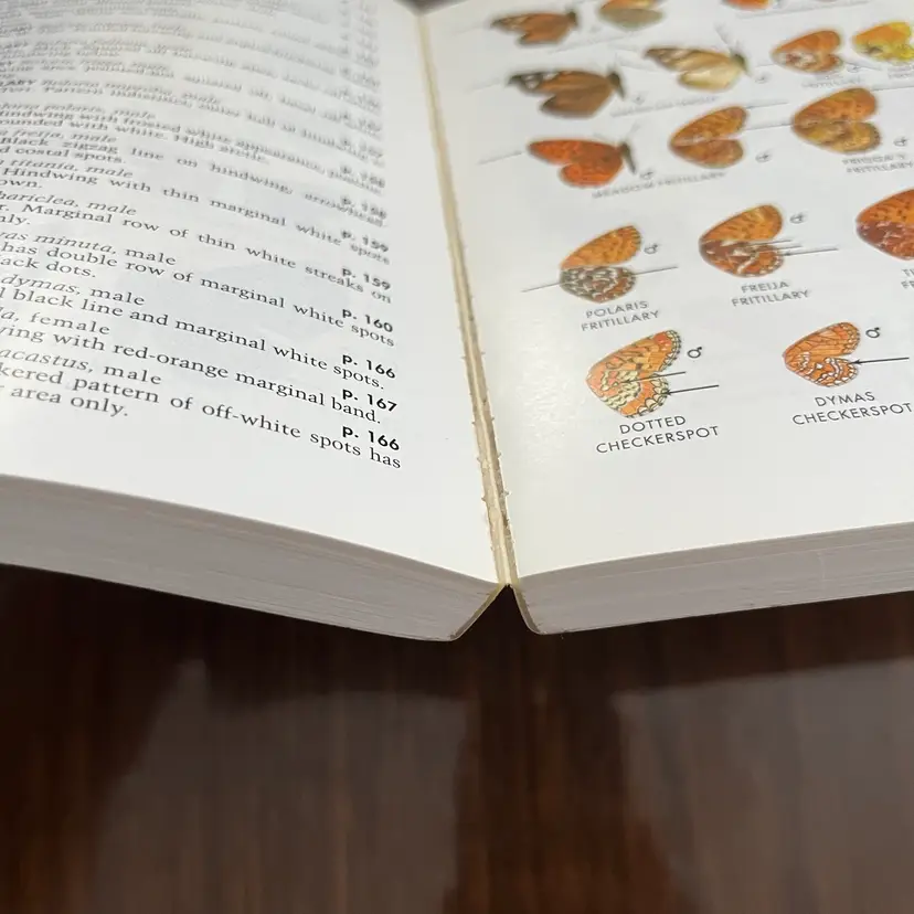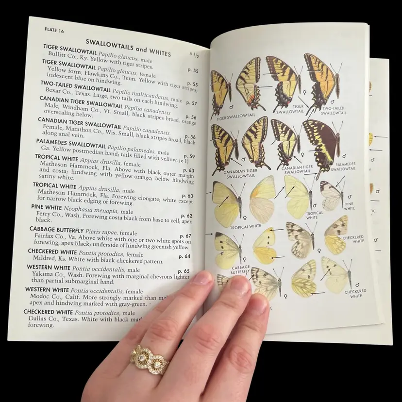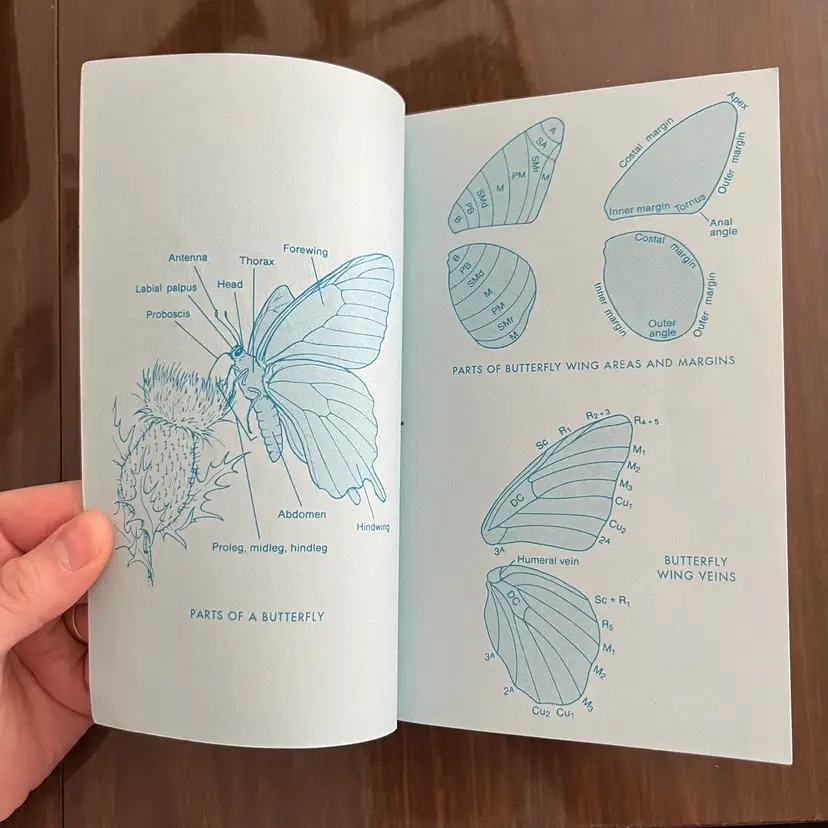 Approximately 7 1/8” x 4 3/8” x 1”. In used vintage condition. There’s writing on the cover as well as a note written on the first page. There is a section in the back where you can check off butterflies you’ve seen and some have been written next to in pencil. Some creasing to a few pages. In the center of the book the binding is kind of “split” when you open it, so it lays flat (see photo #15).