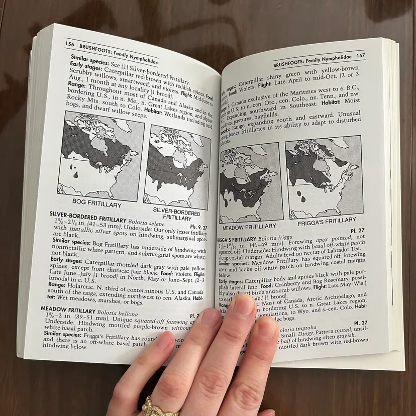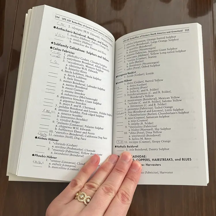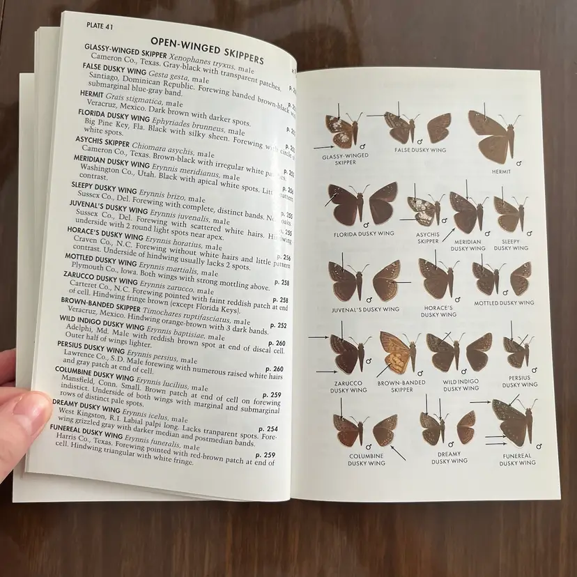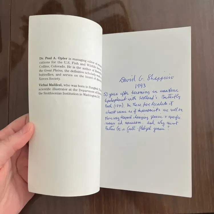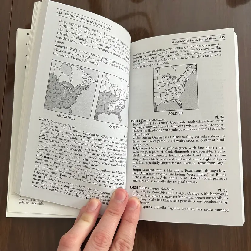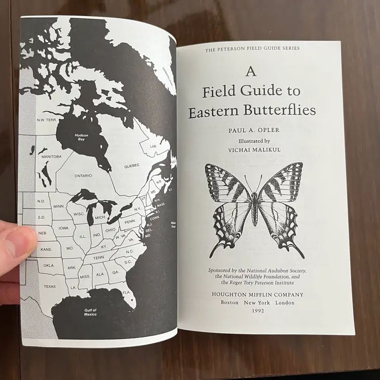 Approximately 7 1/8” x 4 3/8” x 1”. In used vintage condition. There’s writing on the cover as well as a note written on the first page. There is a section in the back where you can check off butterflies you’ve seen and some have been written next to in pencil. Some creasing to a few pages. In the center of the book the binding is kind of “split” when you open it, so it lays flat (see photo #15).