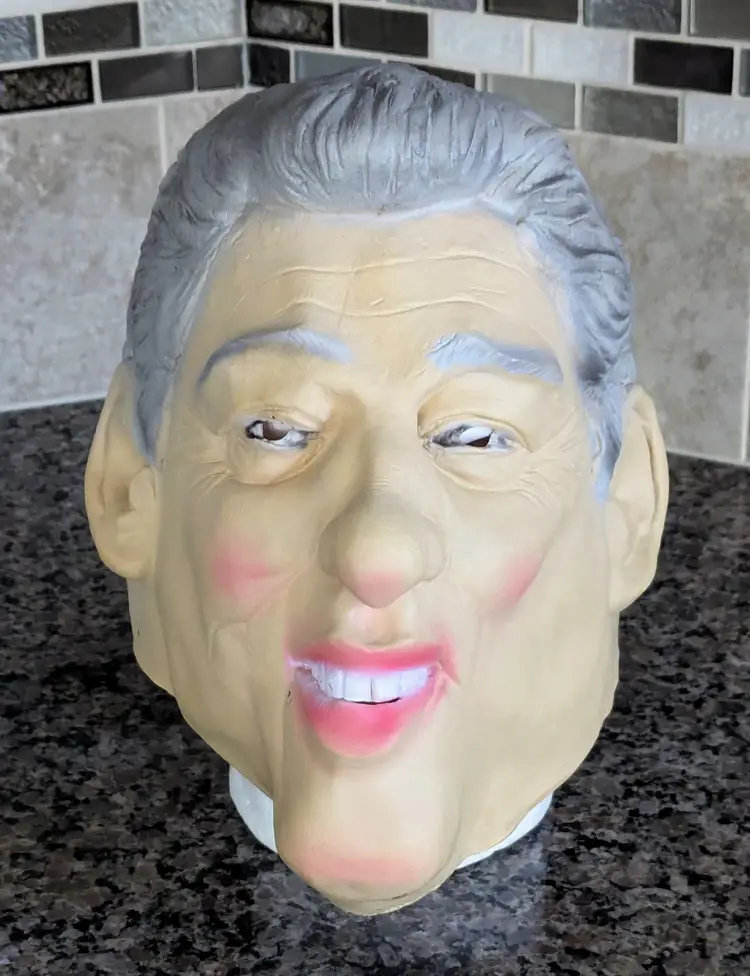 This listing is for a sweet vintage Bill Clinton Halloween disguise rubber mask. It's from 1992 in excellent condition with no tears or rips. Very clean and lightly used a few times. My head size is 7⅝ and it fits perfect.