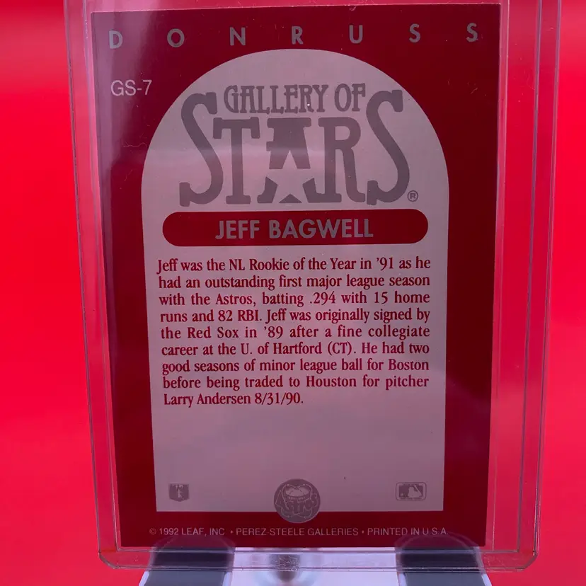 You are purchasing one MLB Houston Astros Jeff Bagwell Trading Card #GS-7 by Leaf and their 1992 Donruss Gallery of Stars line. This Card is in overall great condition, see images for a closer look.