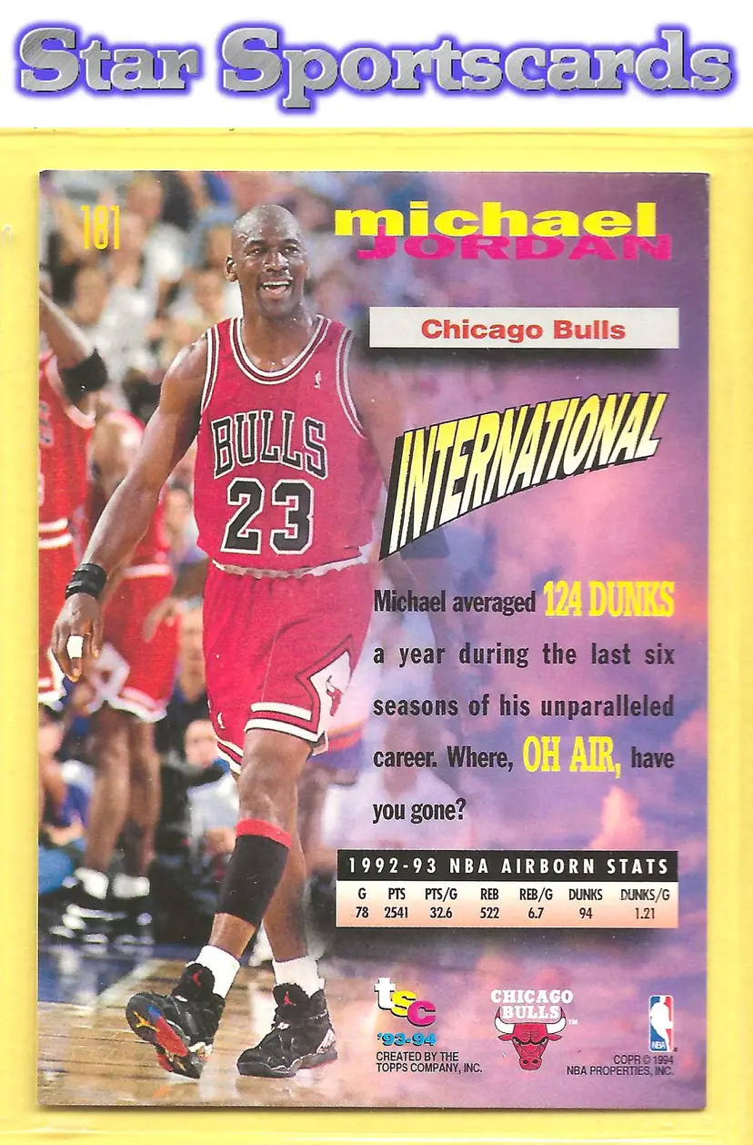 This is a nice example of a 1993-94 Stadium Club #181 Michael Jordan .Other important information about this card: In Michael Jordan played for the Chicago Bulls.Please check out our other listings for more great cards.