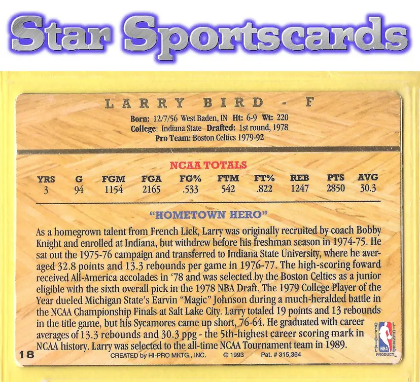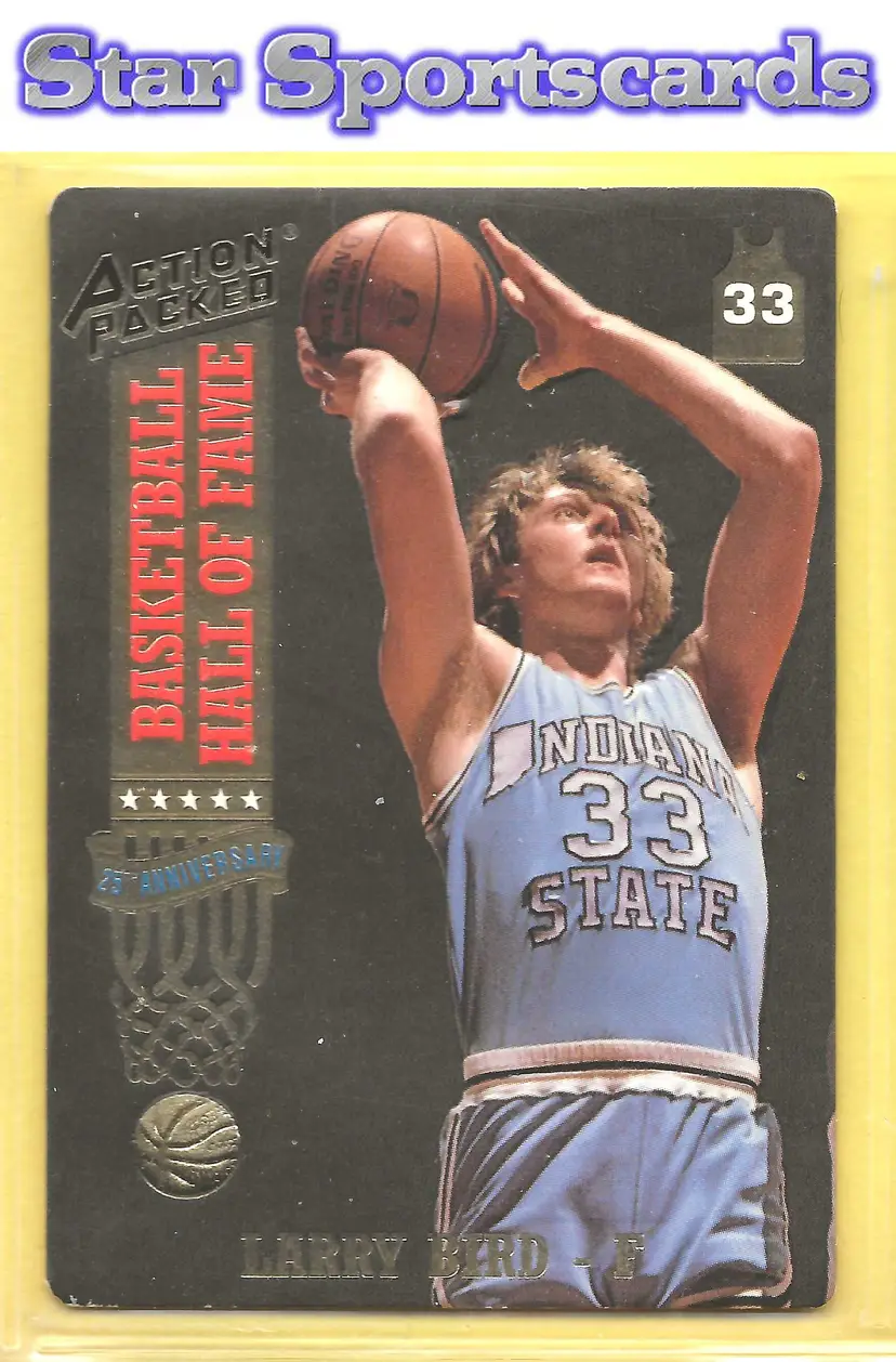 This is a nice example of a 1993 Action Packed Hall of Fame #18 Larry Bird .Other important information about this card: In Larry Bird played for the Indiana State Sycamores.Please check out our other listings for more great cards.