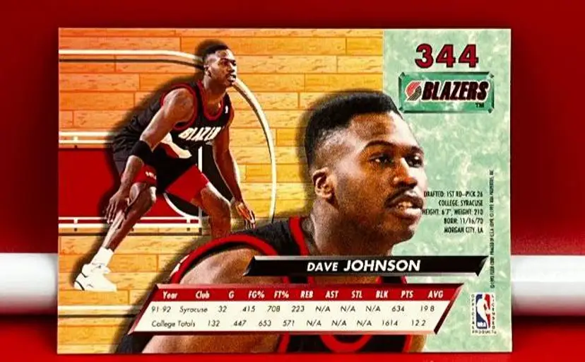 Hello, what we have is a Collector Trading Card by: Fleer Ultra. Year: 1993. Team: Blazers. Note: Rookie. Player: Dave Johnson. Number: 344.