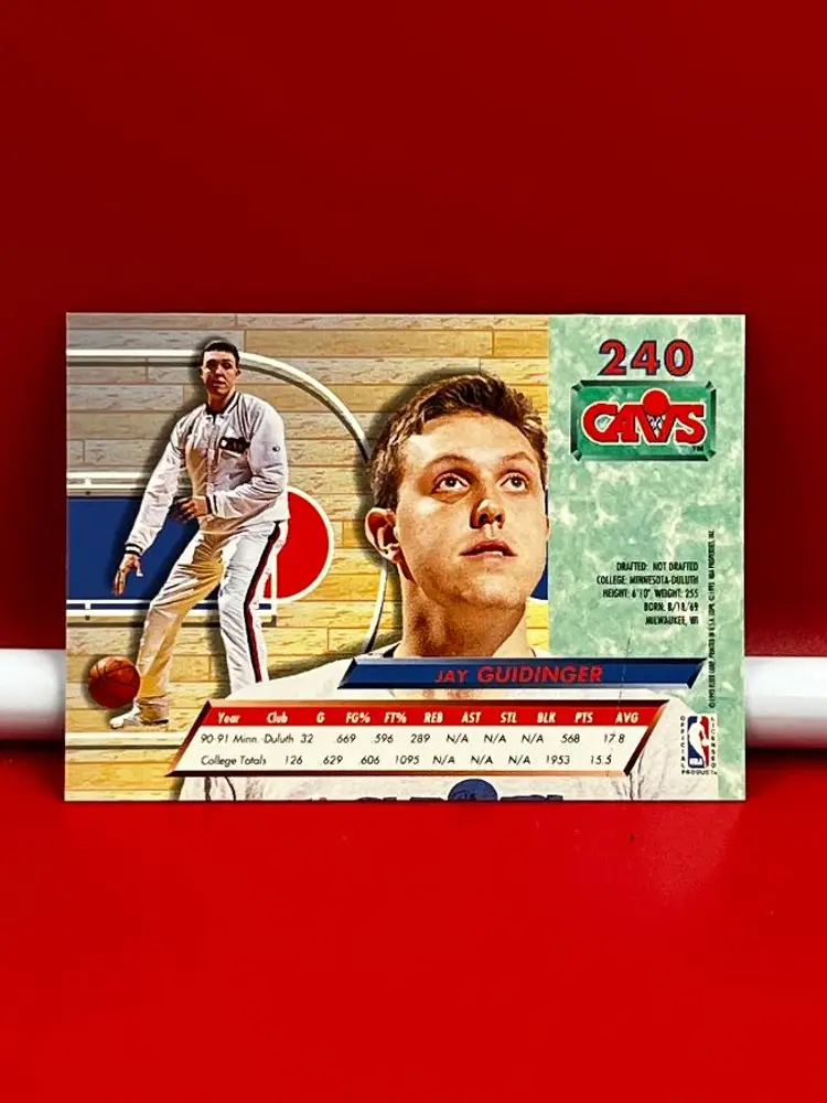 Hello, what we have is a Collector Trading Card by: Fleer Ultra. Year: 1993. Note: Rookie Card. Team: Cavaliers. Player: Jay Guidinger. Number: 240. Be sure to take advantage of combined shipping to save more.