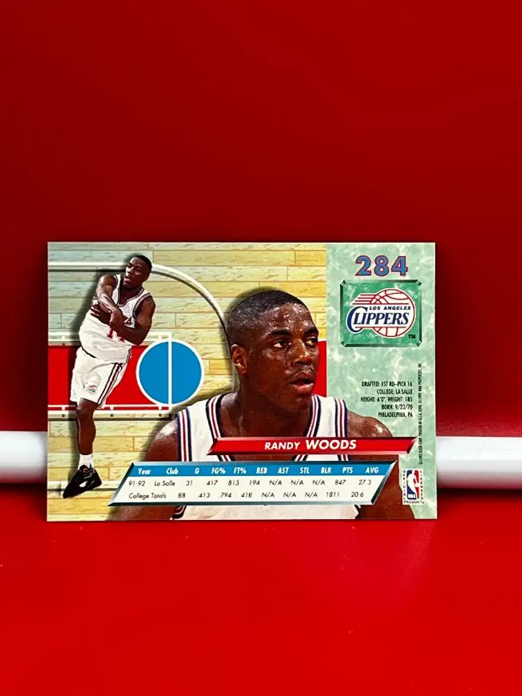 Hello, what we have is a Collector Trading Card by: Fleer Ultra. Year: 1993. Team: Clippers. Note: Rookie. Player: Randy Woods. Number: 284.