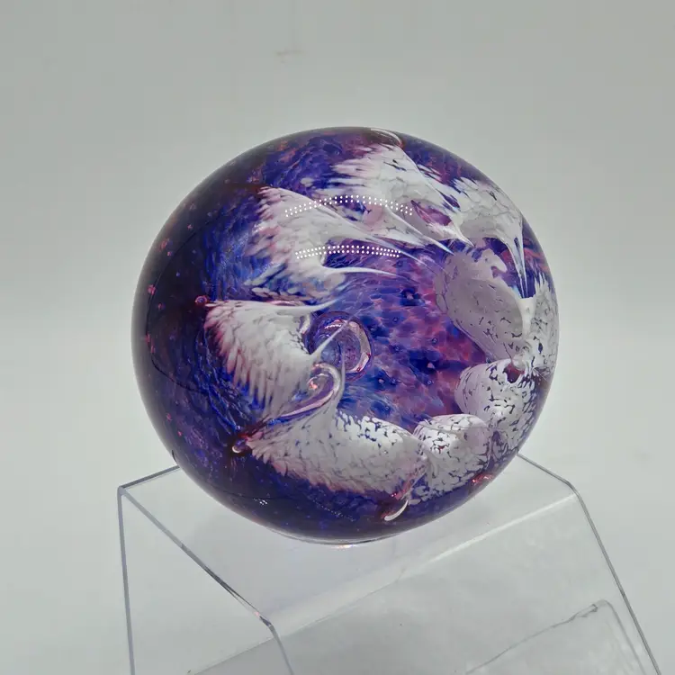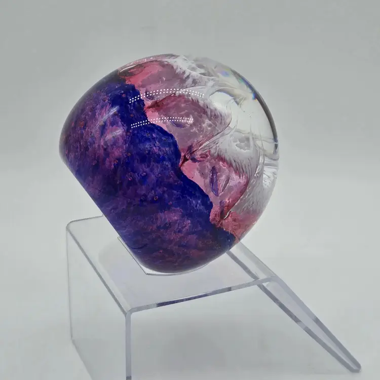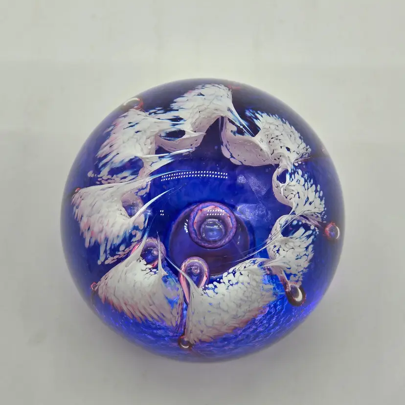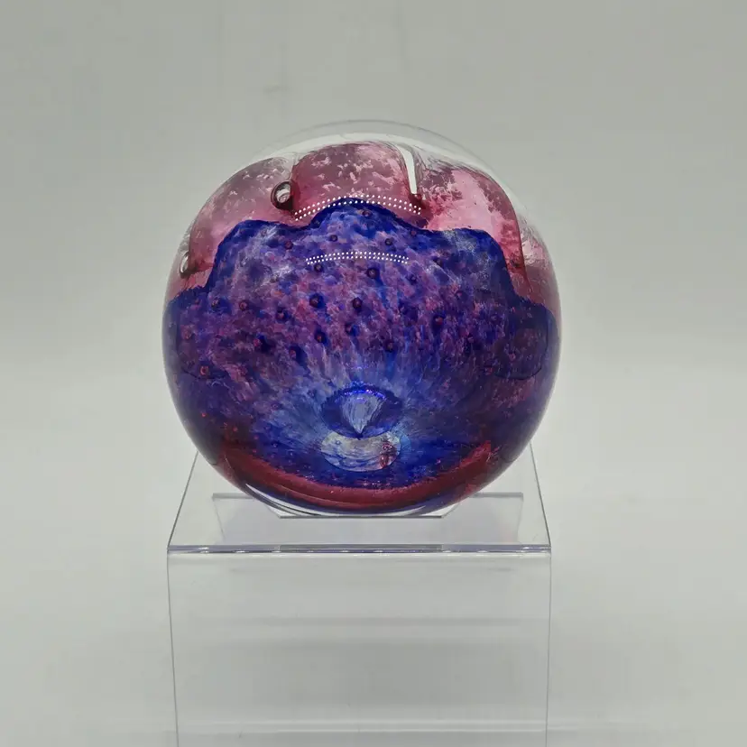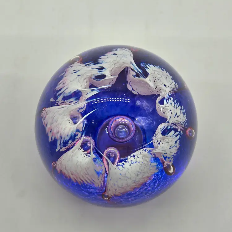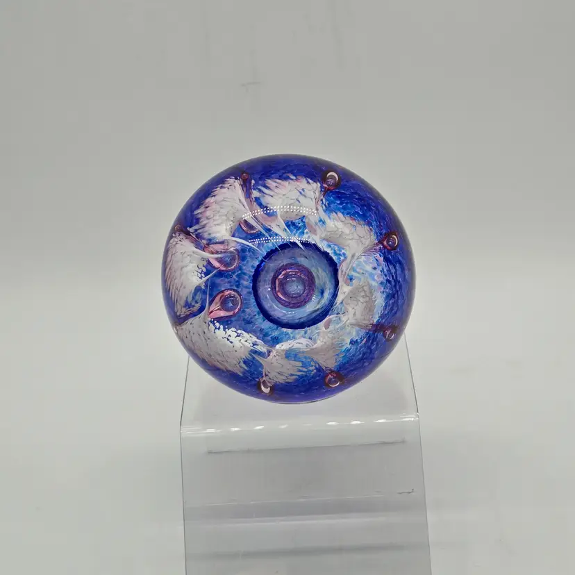 1993 Scottish CAITHNESS GLASS Paperweight entitled "BLUE SPLASH". Includes box and acrylic stand. Stunning,mesmerizing, paperweight...like looking into an eye or a galaxy. 3" paperweight in excellent vintage condition. No chips, cracks, bruises or scratches. Please check photos as they are part of the description. Item will be well wrapped before shipping.
