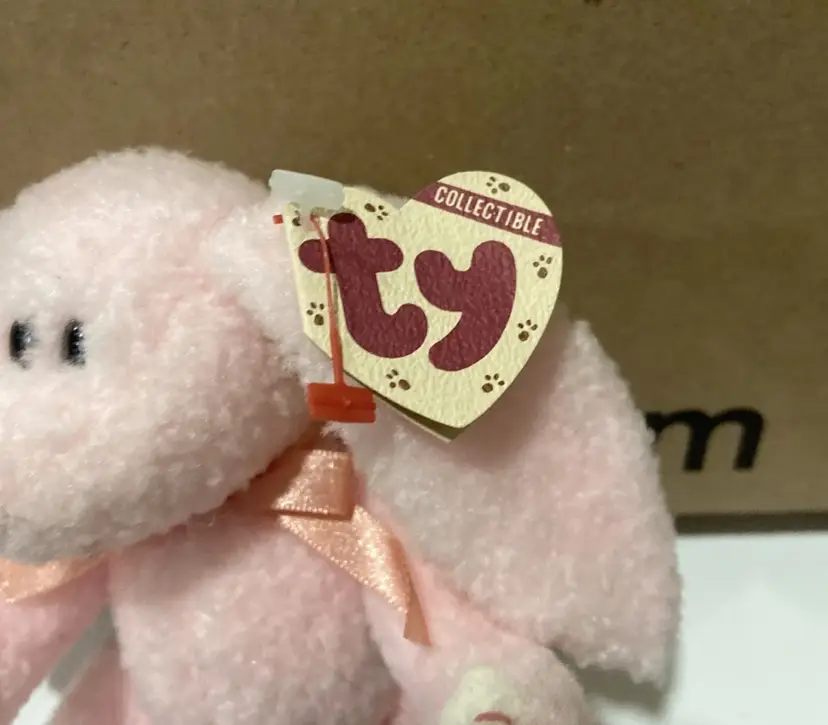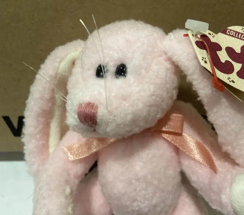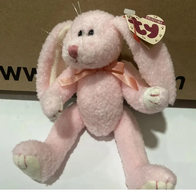 1993 Ty Collectible Beanie Babies STRAWBUNNY Jointed Pink Rabbit w/Tags (8")
