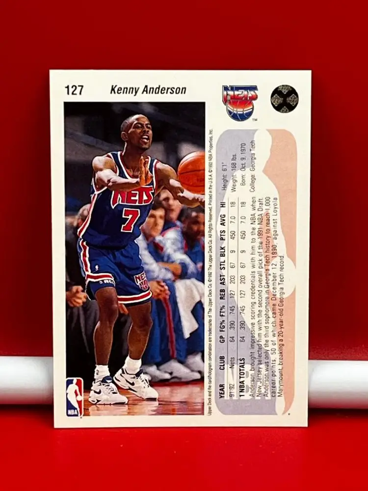 Hello, what we have is a Collector Trading Card by: Upper Deck. Year: 1993. Team: Nets. Sport: Basketball. Player: Kenny Anderson. Number: 127.