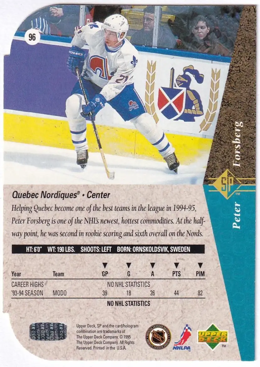 1994-95 SP Die Cuts #96 Peter Forsberg Quebec Nordiques