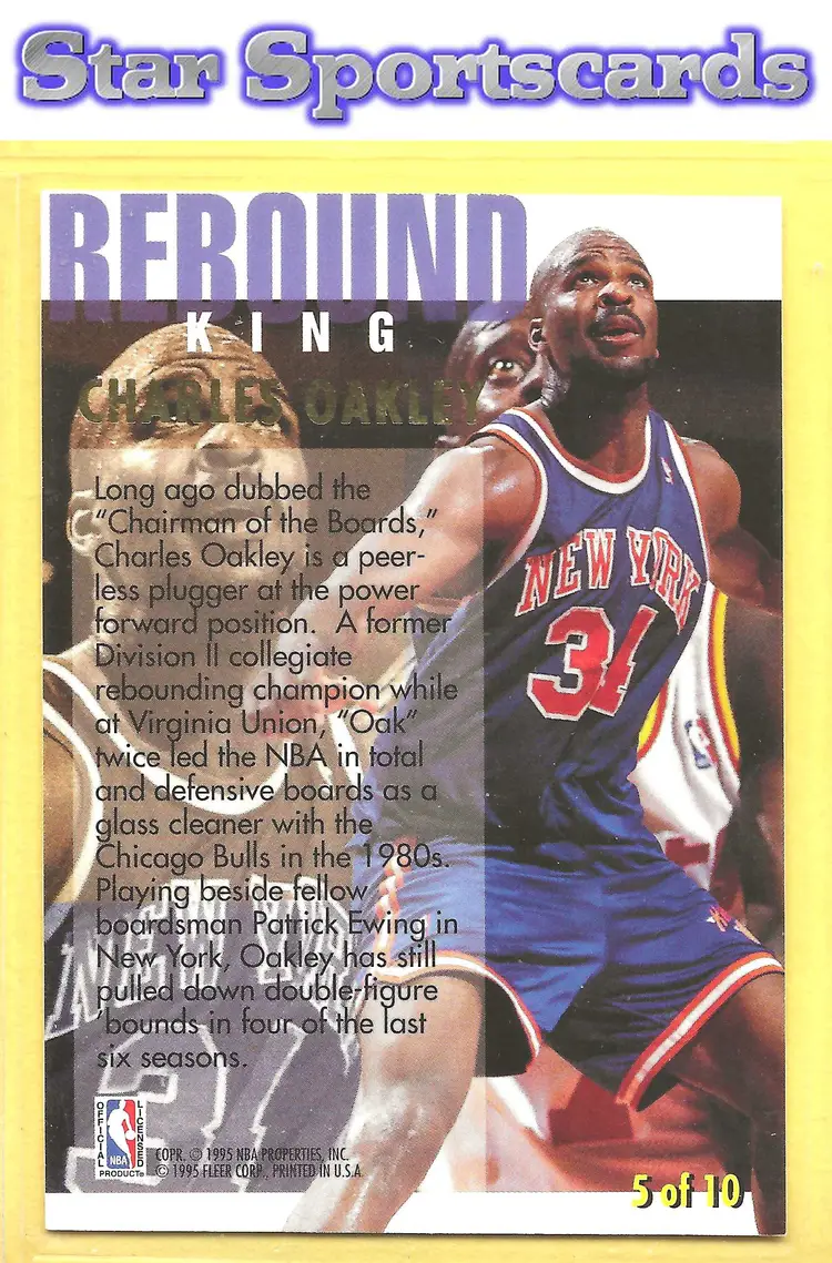 This is a nice example of a 1994-95 Ultra #5 Charles Oakley Rebound Kings .Other important information about this card: In Charles Oakley played for the New York Knicks.Please check out our other listings for more great cards.